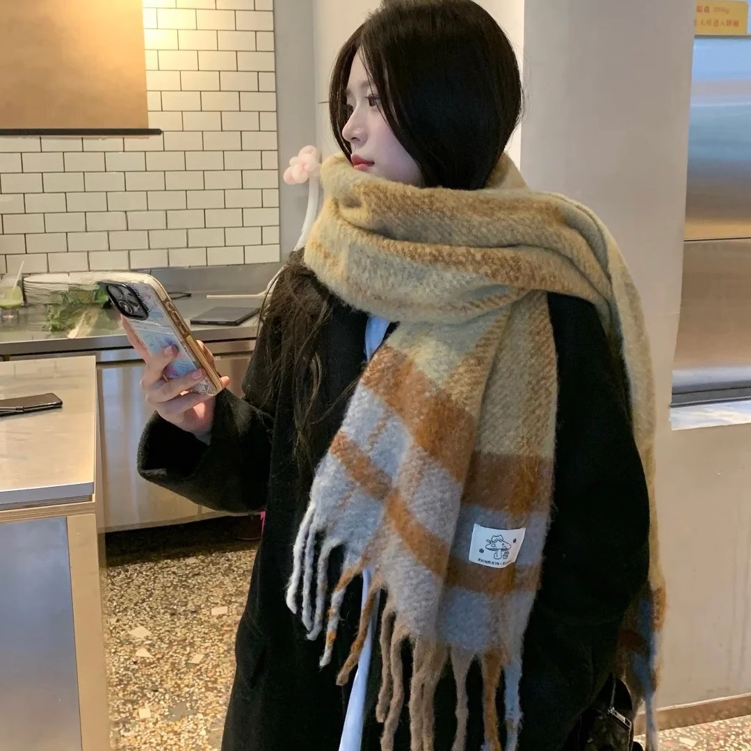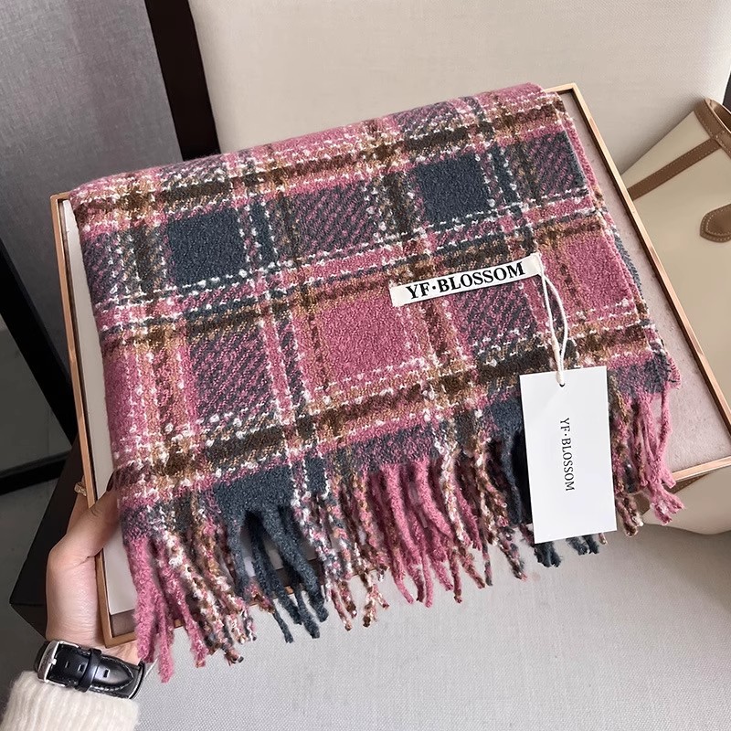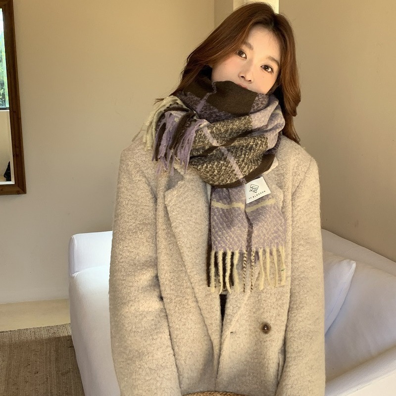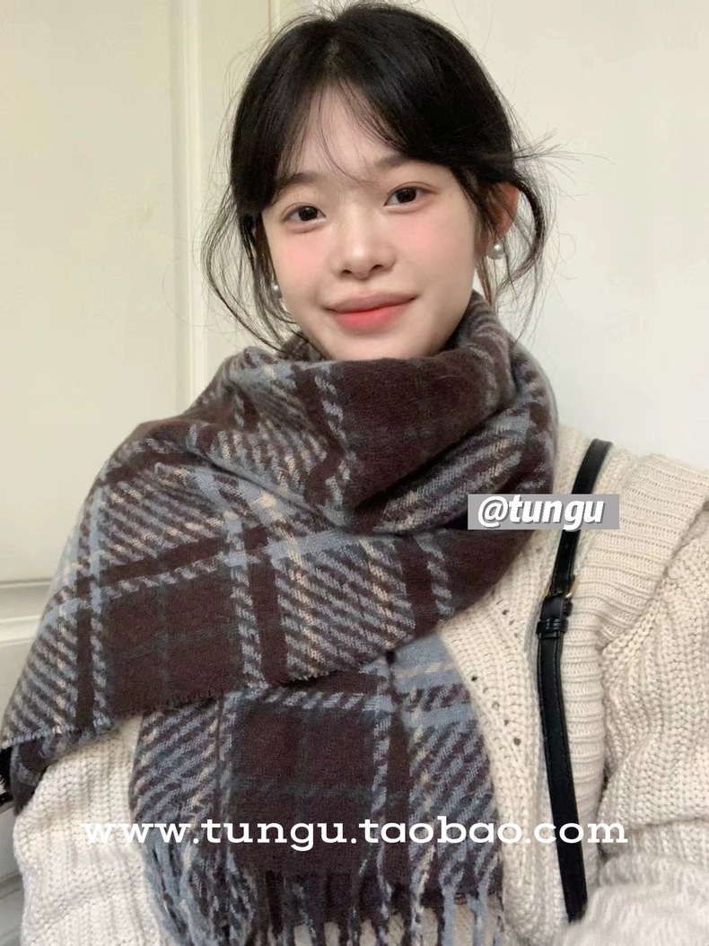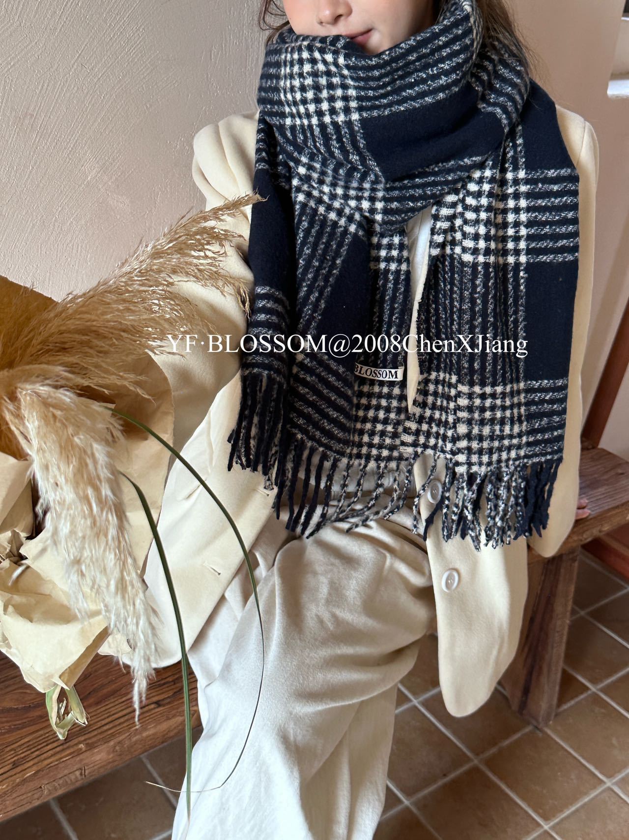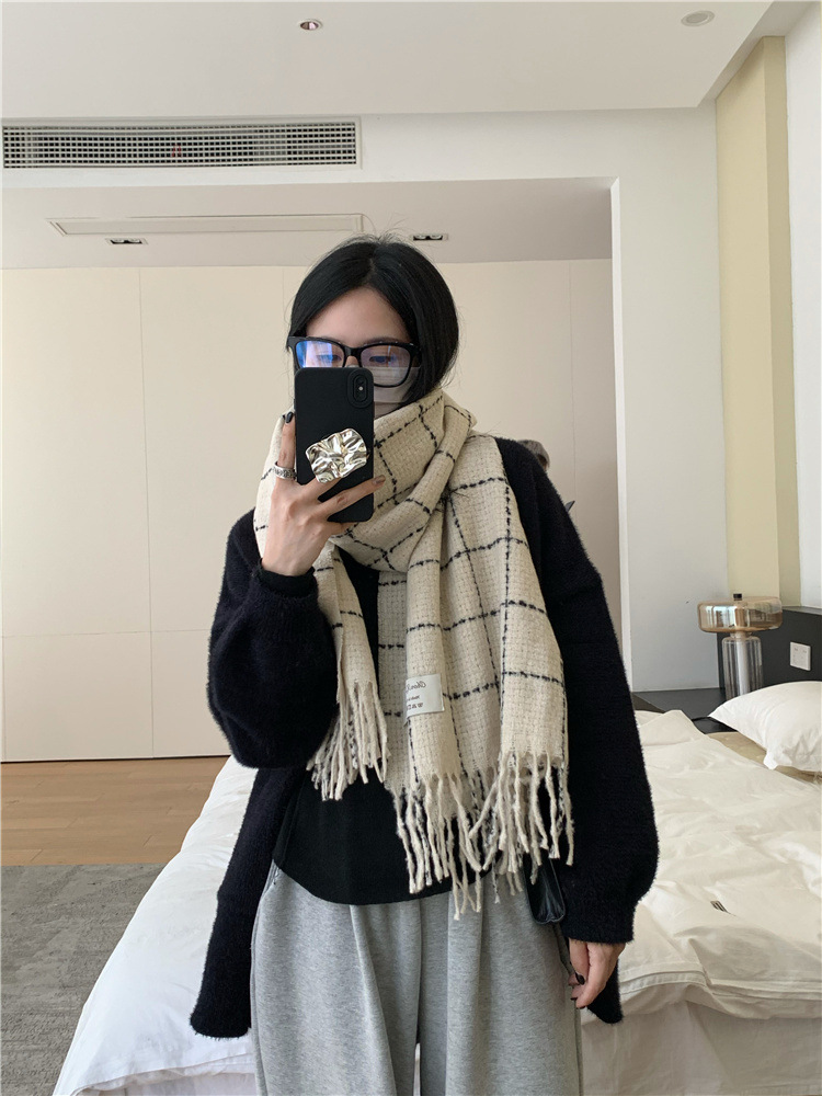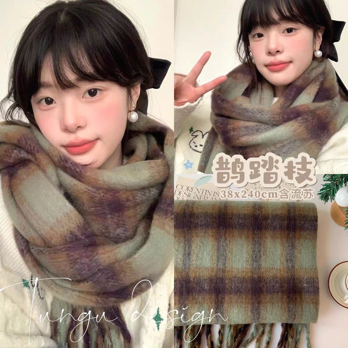 분위기 새해 붉은 격자 무늬 레트로 스카프 여자 가을 겨울 한국식 올매치 따뜻한 목 커플 목도리