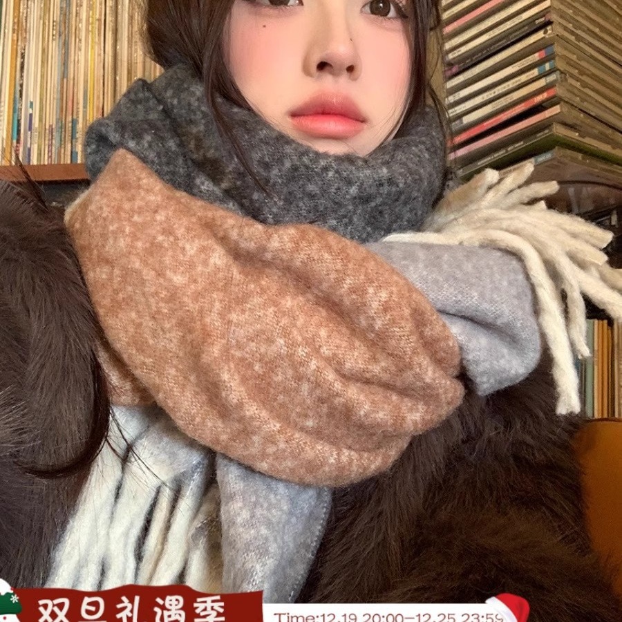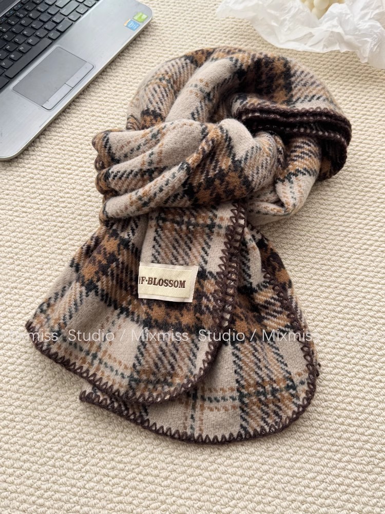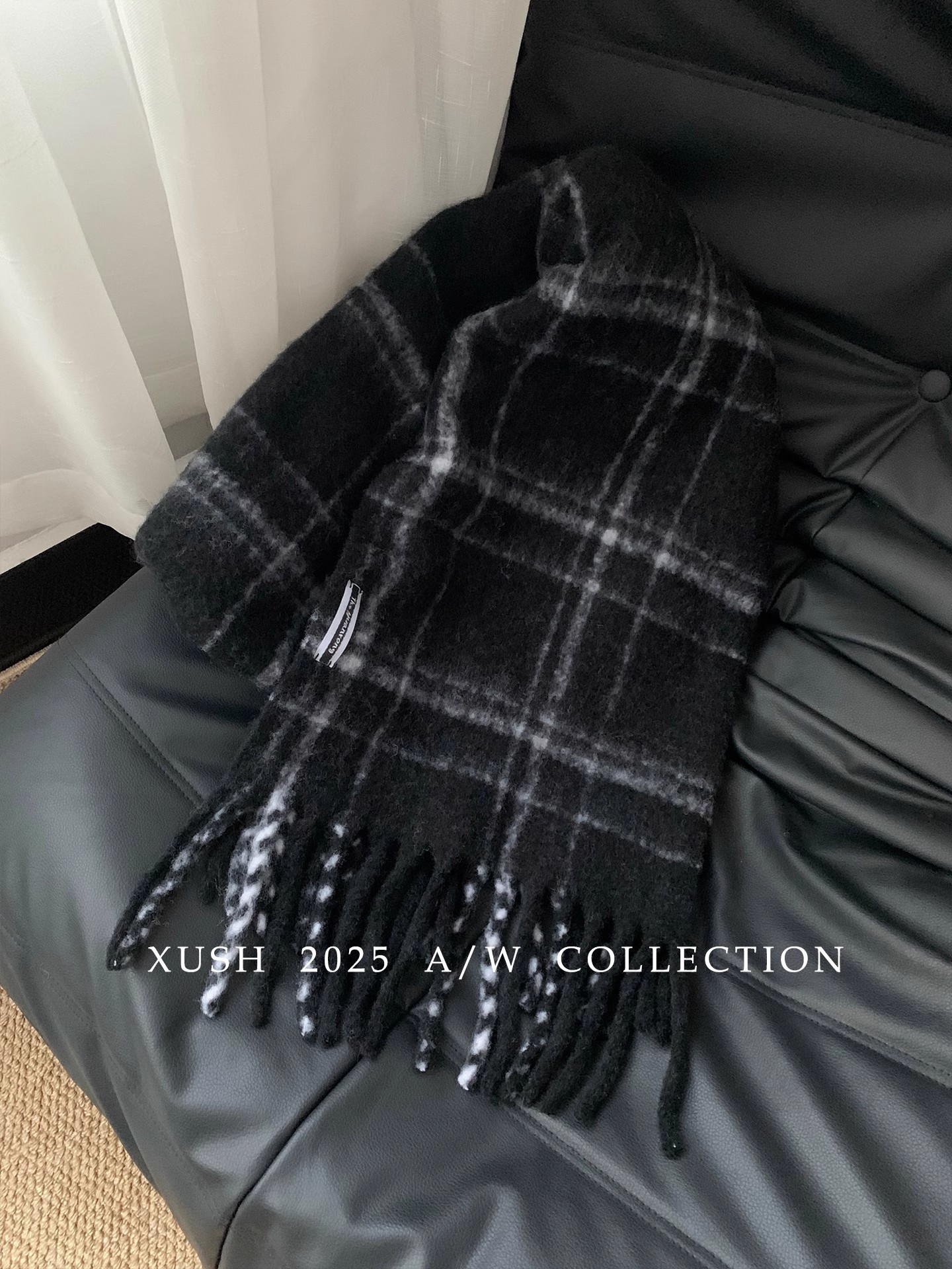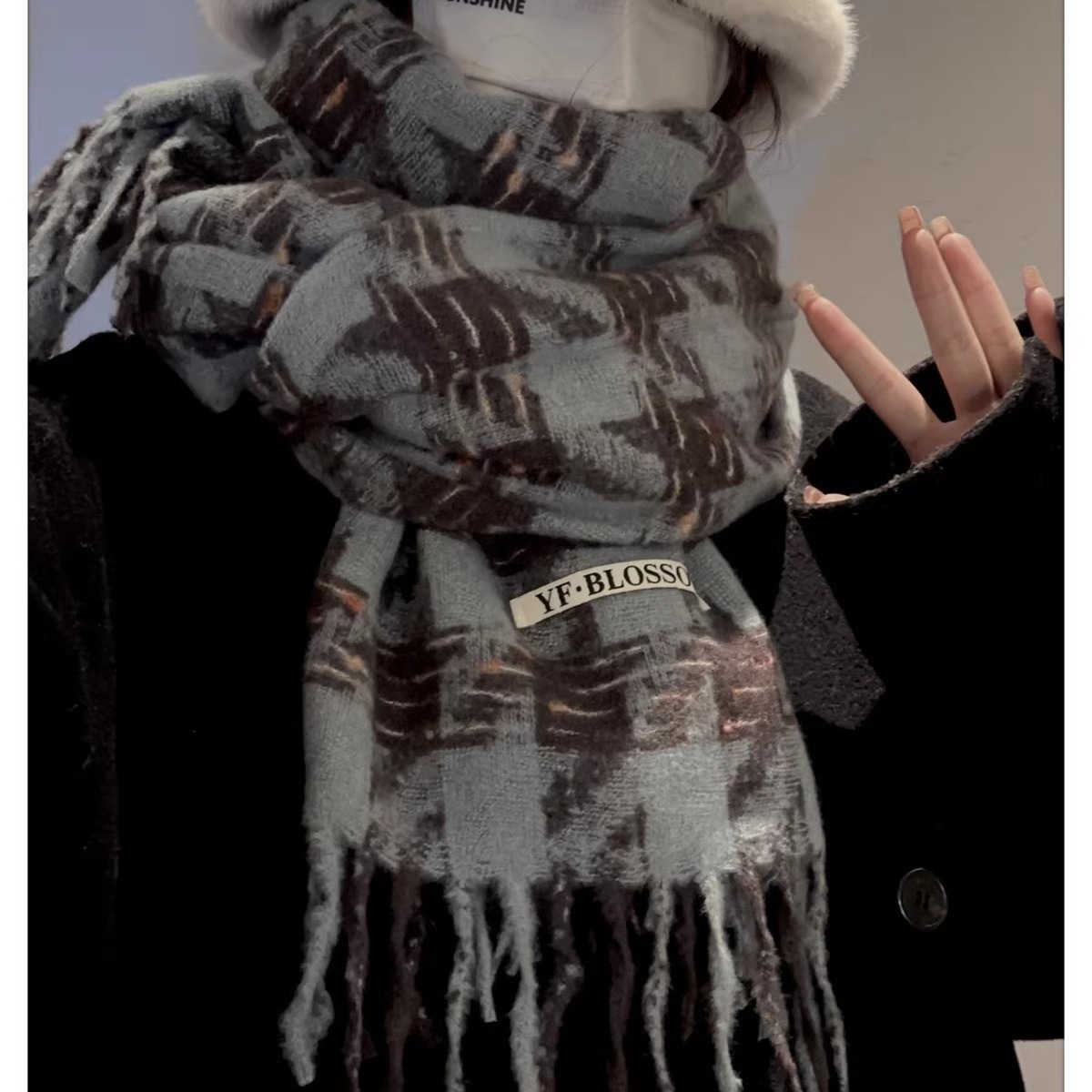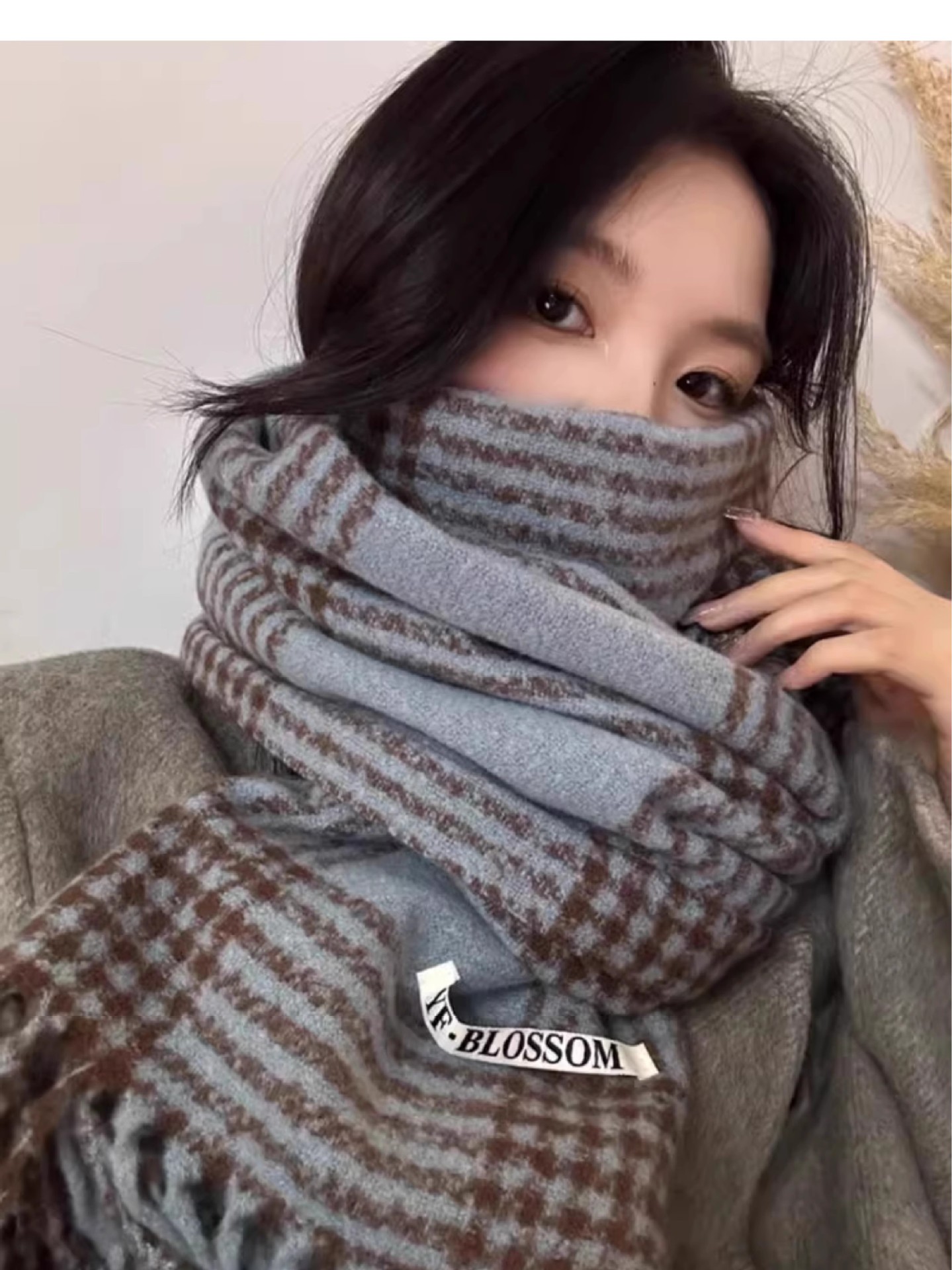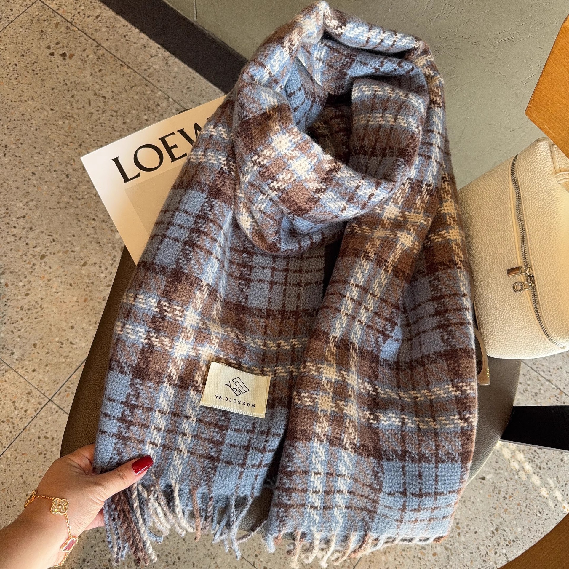 분위기 새해 붉은 격자 무늬 레트로 스카프 여자 가을 겨울 한국식 올매치 따뜻한 목 커플 목도리