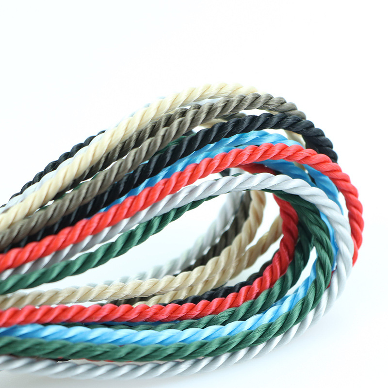 멀티 컬러 옵션 폴리 프로필렌 섬유 3 가닥 로프 1-5mm 다중 두께 선물 가방 번들 포켓 모조 나일론 로프 번들스토어 가기