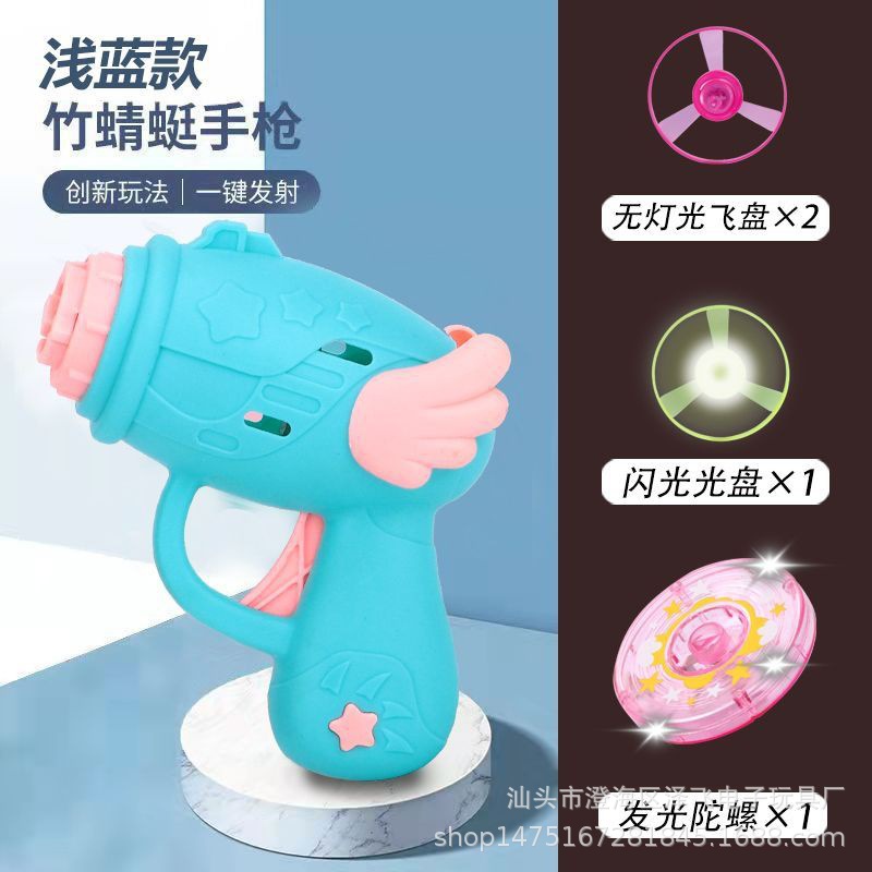 새로운 어린이 마구간 야외 투석기 비행 화려한 발광 탑 대나무 잠자리 흔들기 소리 야외 장난감 비행 접시 총스토어 가기