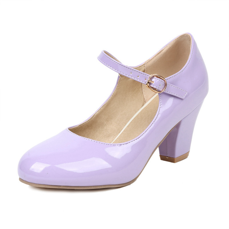 40-43 대형 신발 해외 무역 크로스 보더 여성 신발 봄과 가을 라운드 발가락 두꺼운 굽 신발 여성용 얕은 입 신발 메리 제인 신발