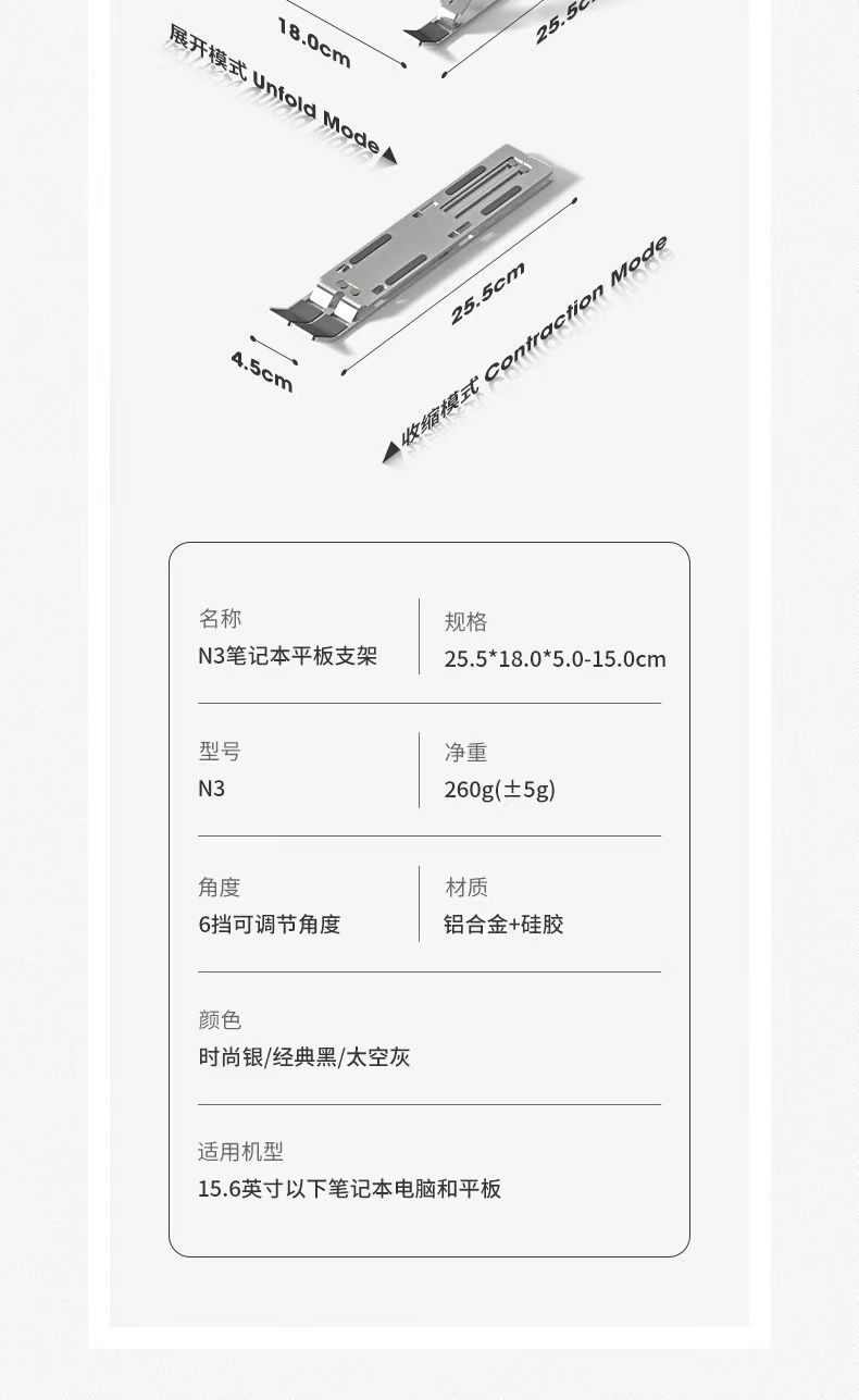 노트북 브래킷 N3 알루미늄 합금 접이식 리프팅 냉각 랙 휴대용 데스크탑 높이 브래킷 도매 생성스토어 가기
