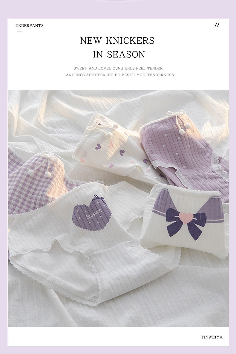 순수한 욕망 타로 퍼플 달콤한 귀여운 소녀 속옷 허리 브리프 엉덩이 면 가랑이 숙녀 속옷 도매스토어 가기