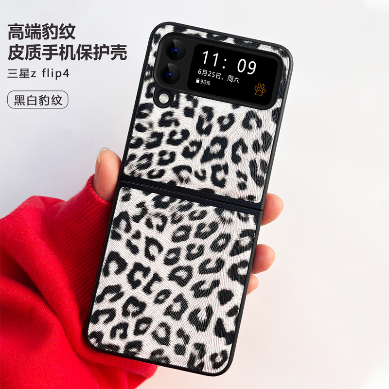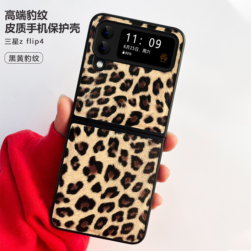 삼성 갤럭시 ZFlip4 레오파드 프린트 가죽 휴대폰 케이스 Zflip 70% off 스택형 2-in-1 보호 케이스 낙하 방지 트렌디