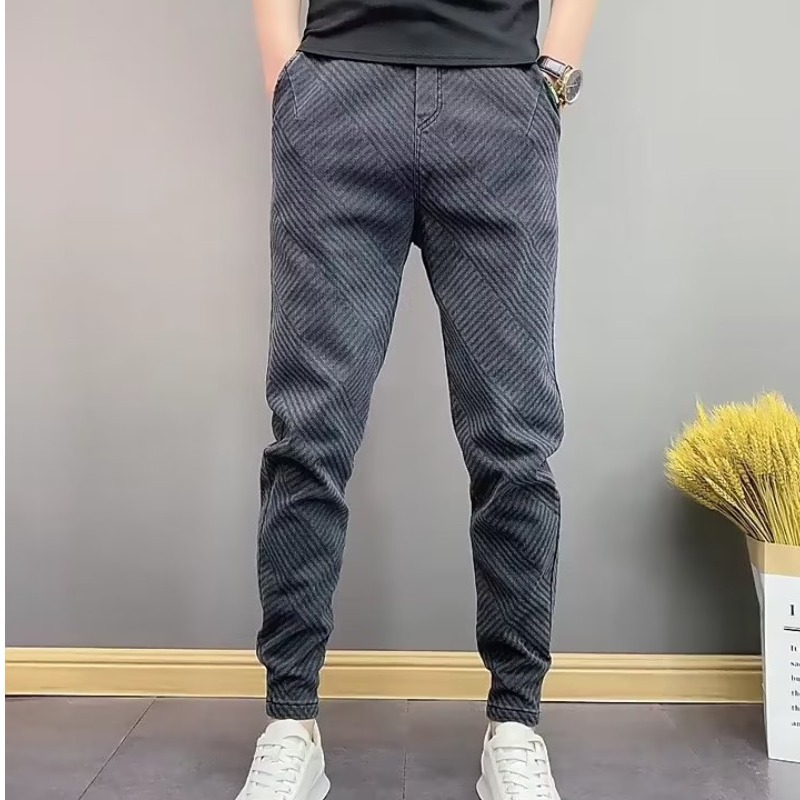 가을과 겨울 신상품 남성용 스트라이프 앵클 팬츠 올매치 패셔너블한 마틴 부츠 슬림핏 캐주얼 청바지스토어 가기
