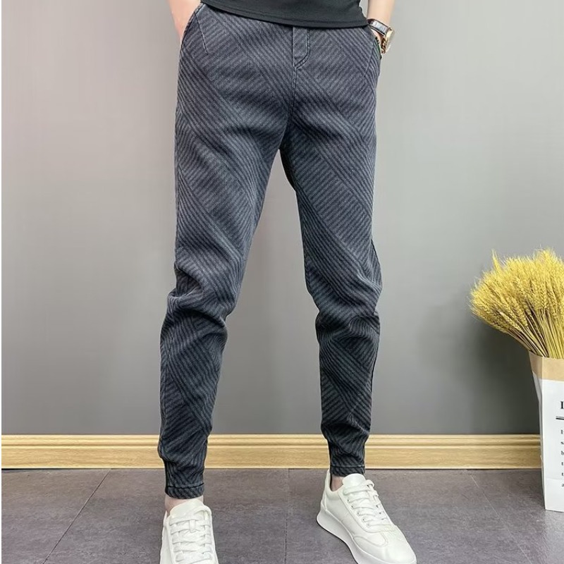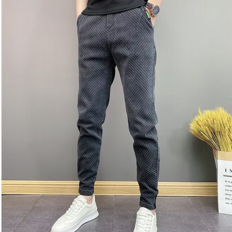 가을과 겨울 신상품 남성용 스트라이프 앵클 팬츠 올매치 패셔너블한 마틴 부츠 슬림핏 캐주얼 청바지