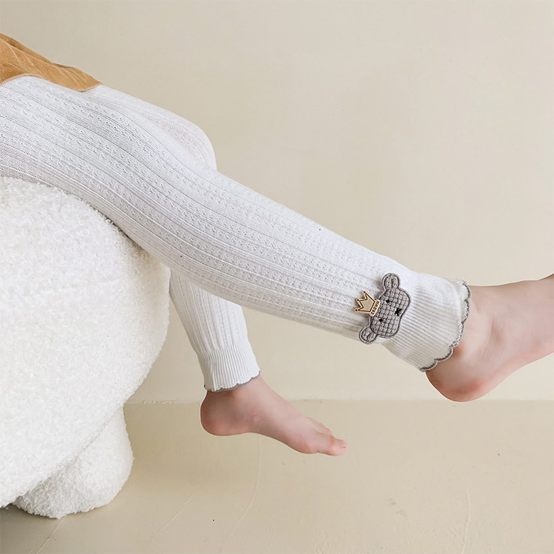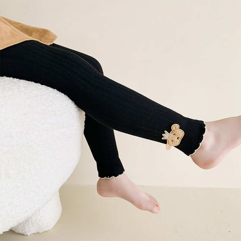 봄과 가을 자른 어린이 바지 여성용 빗질 면 귀여운 곰 어린이 레깅스 여아 겉옷 아기 아동복 가을 바지스토어 가기