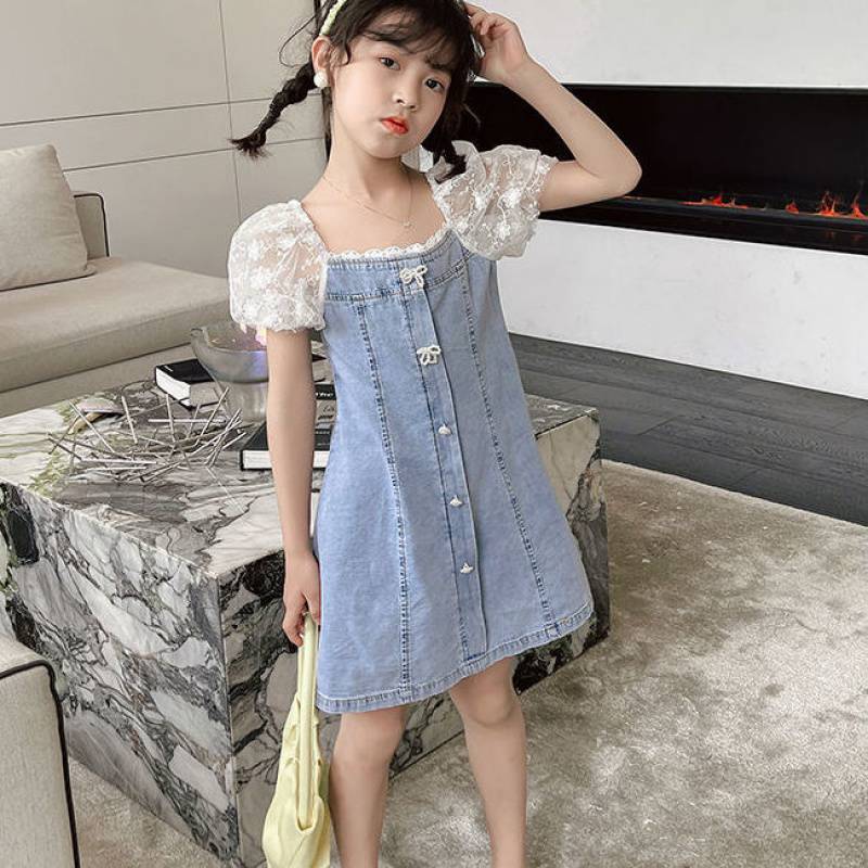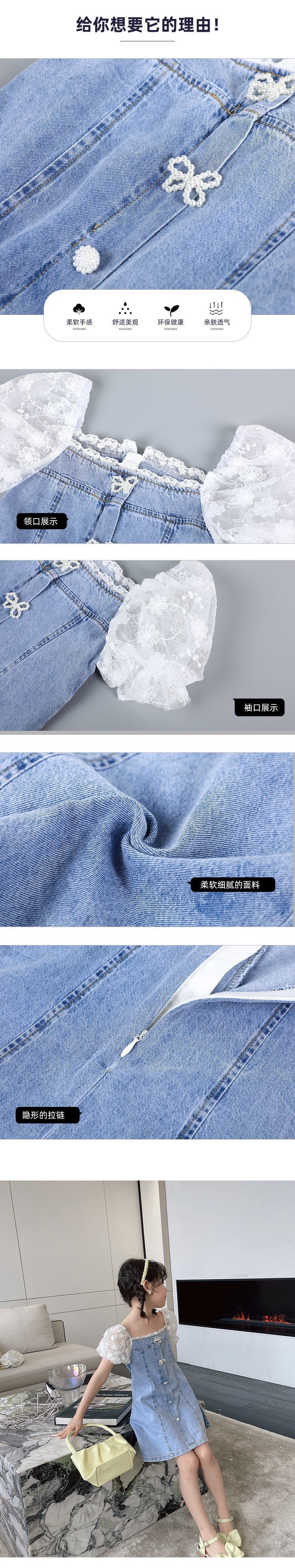 여자 드레스 여름 2025 새로운 스타일 여자 레이스 버블 반팔 공주 데님 스커트 6293
