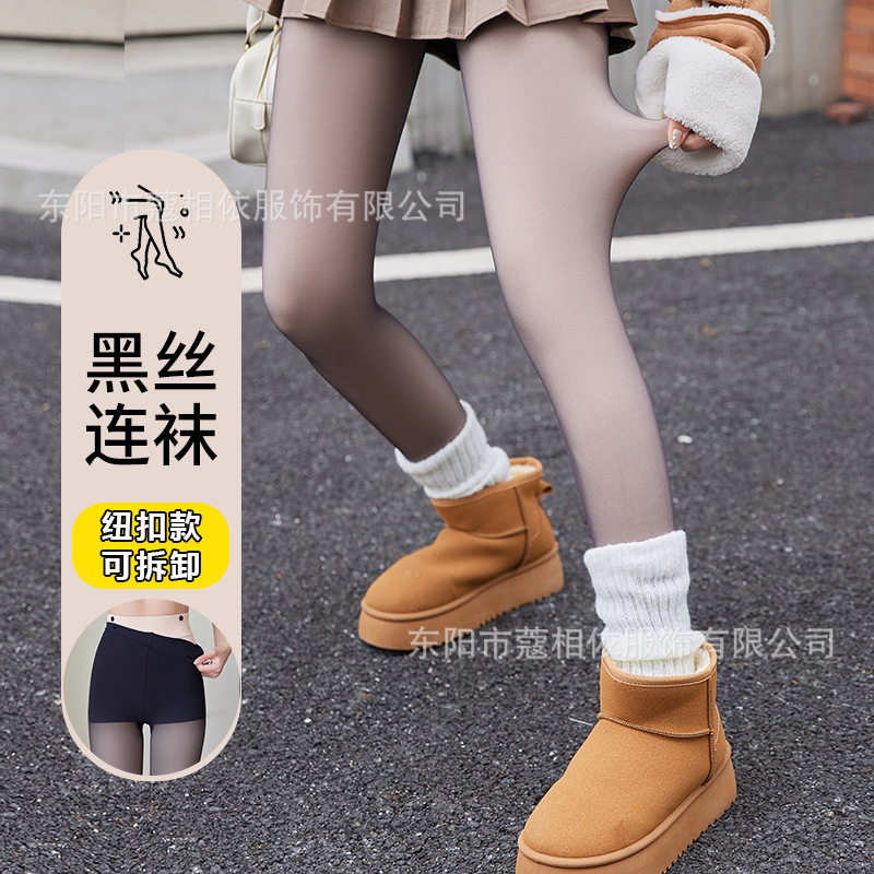 초투명 플러스 벨벳 블랙 스타킹, 교체 가능한 이중 레이어, 가을 겨울용 두꺼운 누드톤 바디스타킹스토어 가기