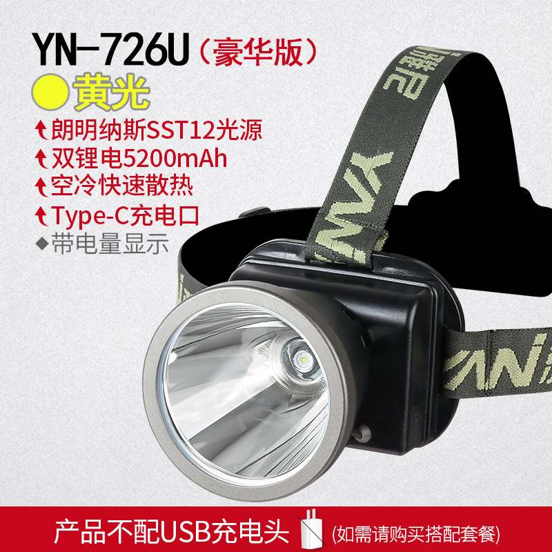 Yanni 726U 헤드 램프 주도 강한 빛 충전 슈퍼 밝은 헤드 마운트 손전등 야외 긴 내구성 리튬 광부의 램프