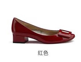 [재고 있음] 여성용 드롭 배송 rv tep 스퀘어 버클 싱글 슈즈, 라운드 토, 두꺼운 굽, 작은 향기로운 페이턴트 가죽 레드 웨딩 슈즈스토어 가기