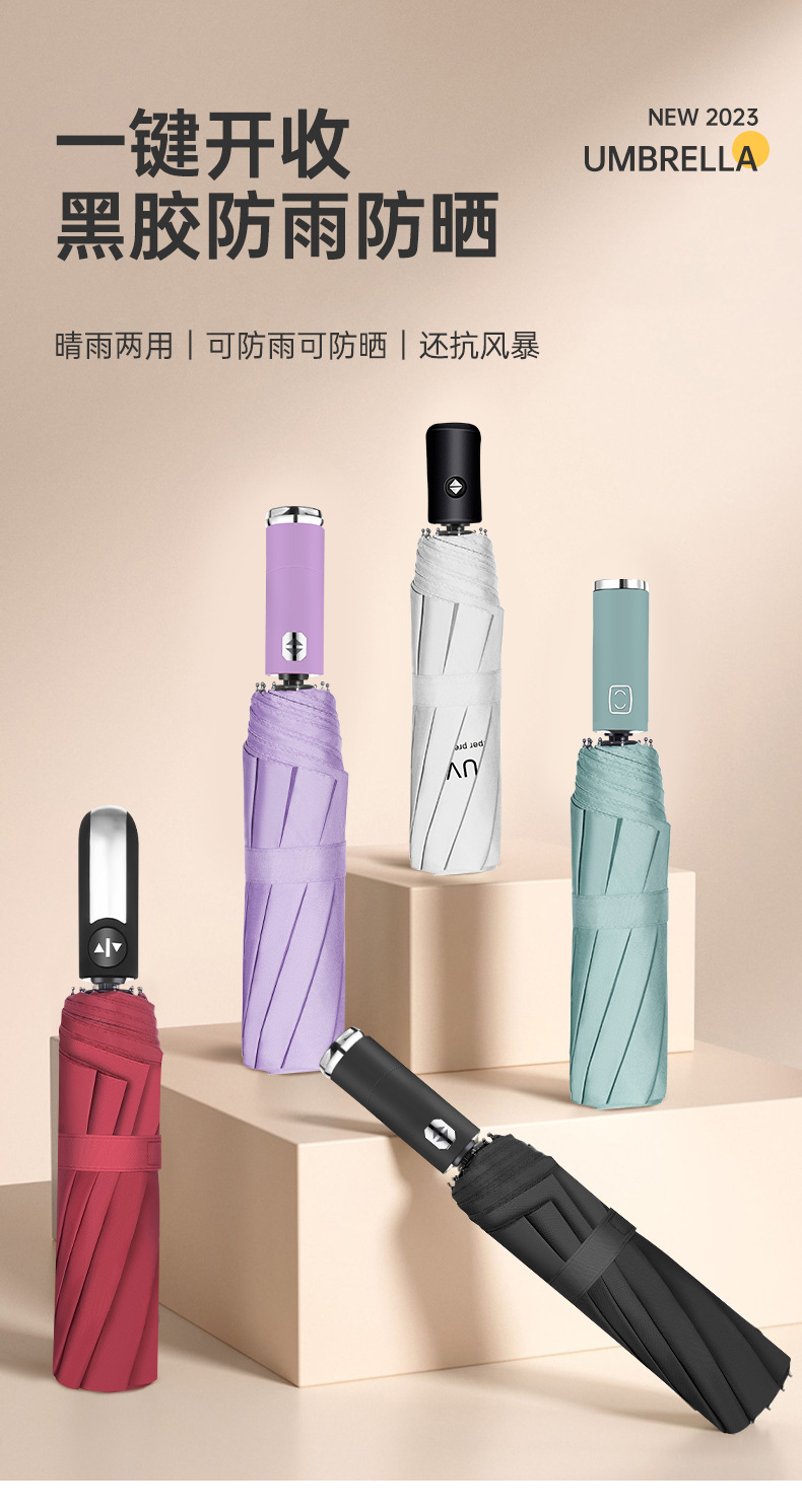 자동 접는 우산 도매 태양 우산 검은 고무 우산 비 우산 3 배 광고 우산 맞춤형 로고