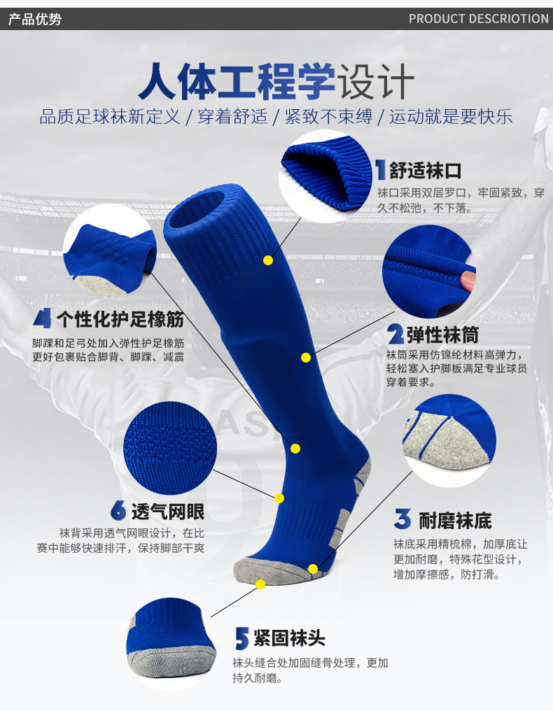 아마존 두꺼운 수건 바닥 축구 스포츠 양말 남성용 내마모성 충격 흡수 긴 양말 무릎 축구 양말 도매