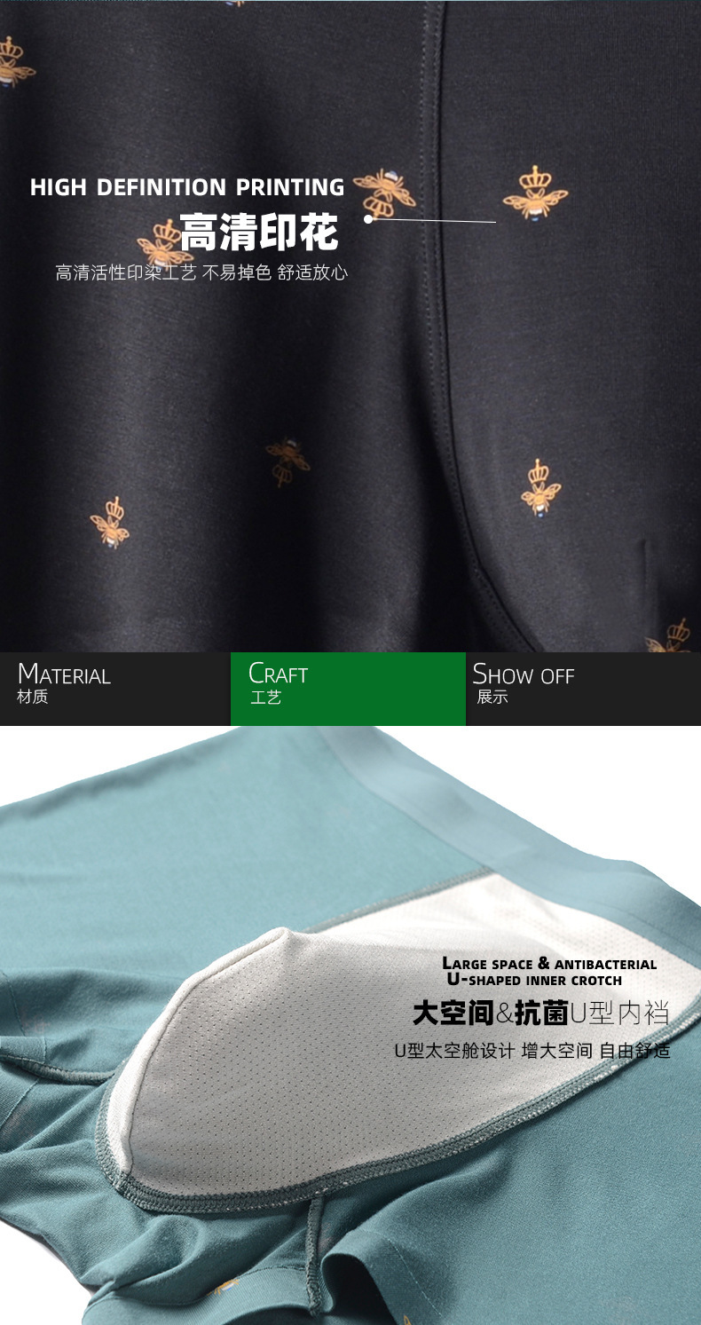 남자 속옷 남자 인쇄 항균 원활한 복서 속옷 남자 청소년 통기성 복서 단순 중산 속옷 도매