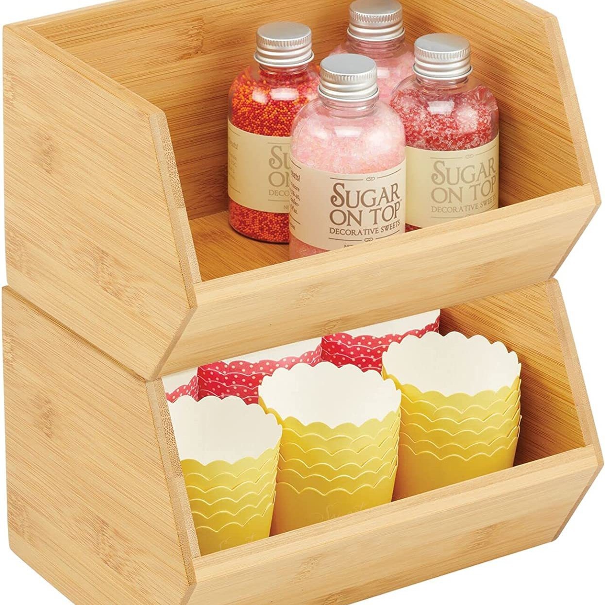 가정용 주방 캐비닛 용 대나무 쌓을 수있는 보관 상자 식기, 향신료 및 기타 보관 상자 2 세트스토어 가기