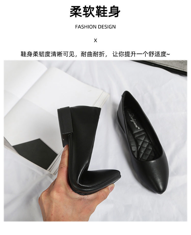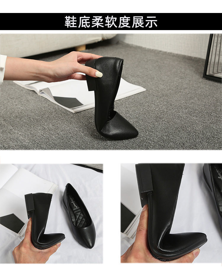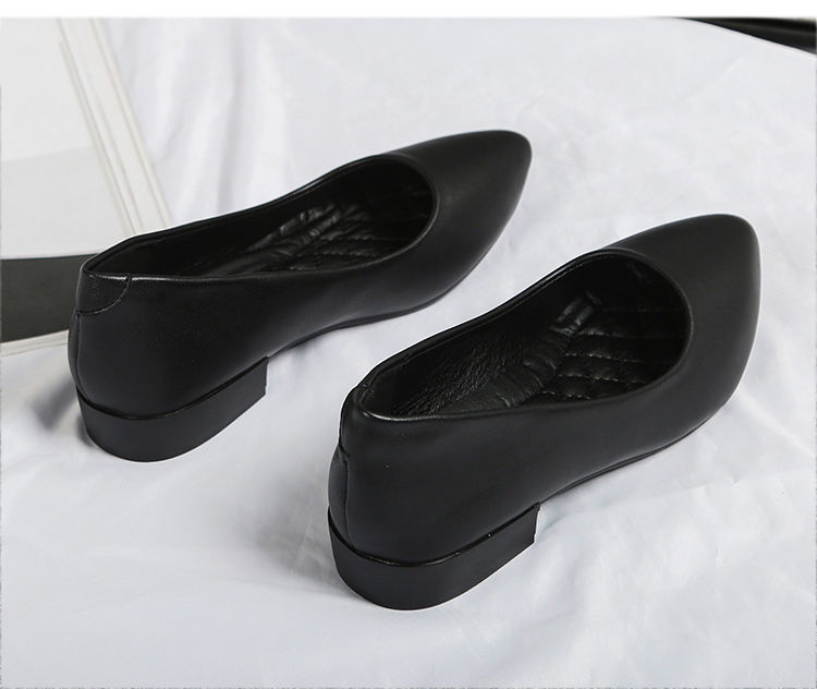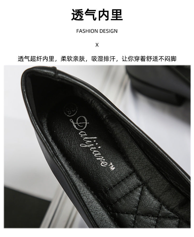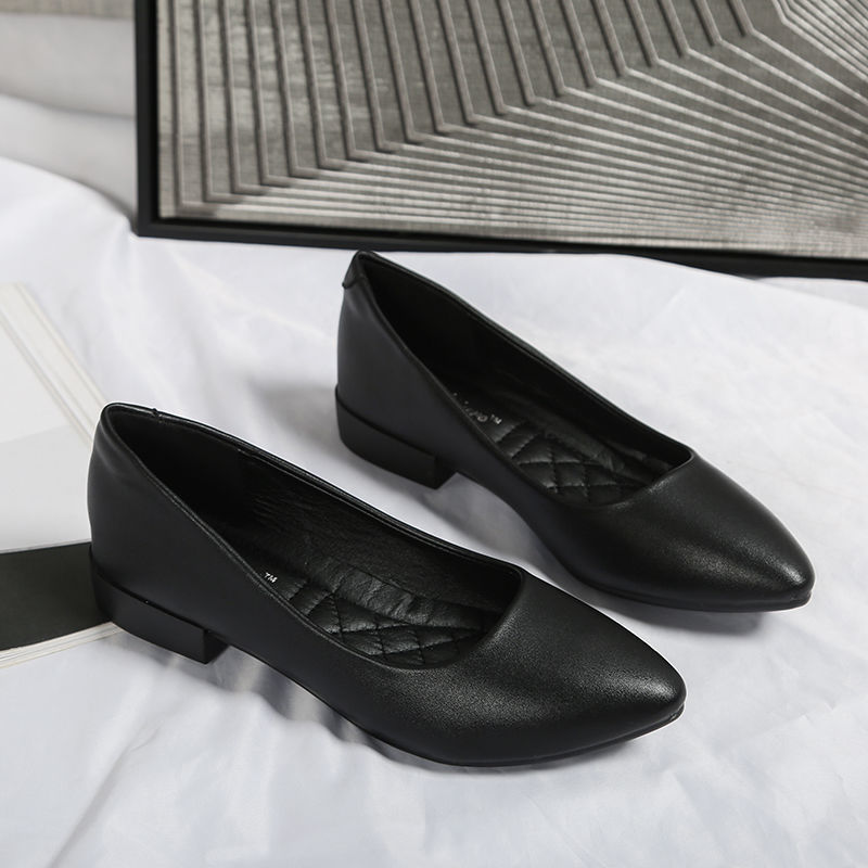 미끄럼 방지 플랫 슈즈 여성용 여름 두꺼운 굽 얕은 입 봄과 가을 새로운 뾰족한 낮은 굽 부드러운 가죽 작업 신발스토어 가기
