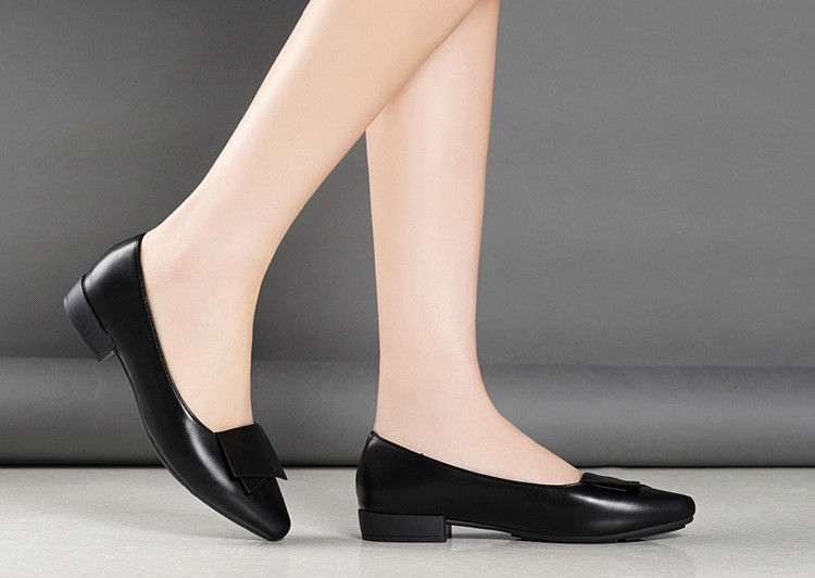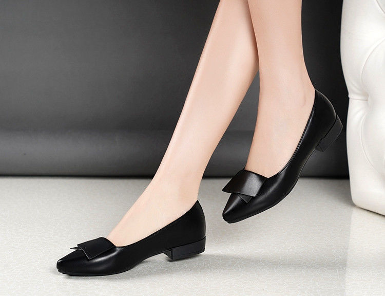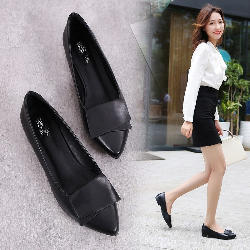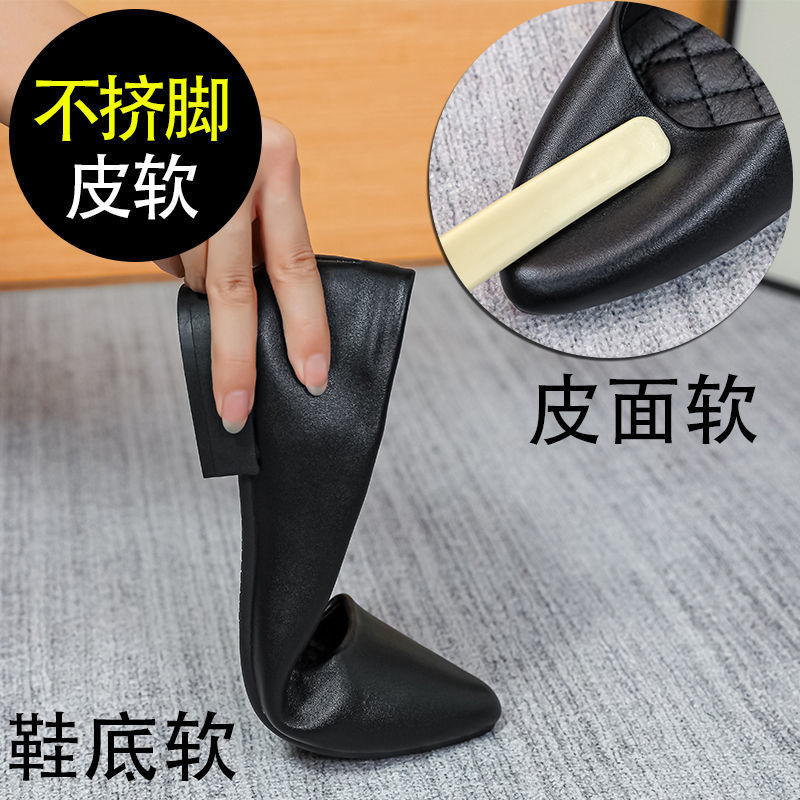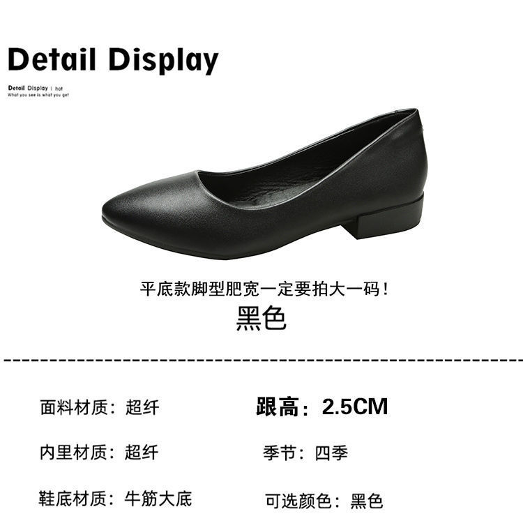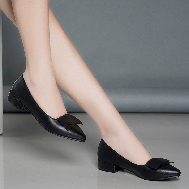 미끄럼 방지 플랫 슈즈 여성용 여름 두꺼운 굽 얕은 입 봄과 가을 새로운 뾰족한 낮은 굽 부드러운 가죽 작업 신발스토어 가기