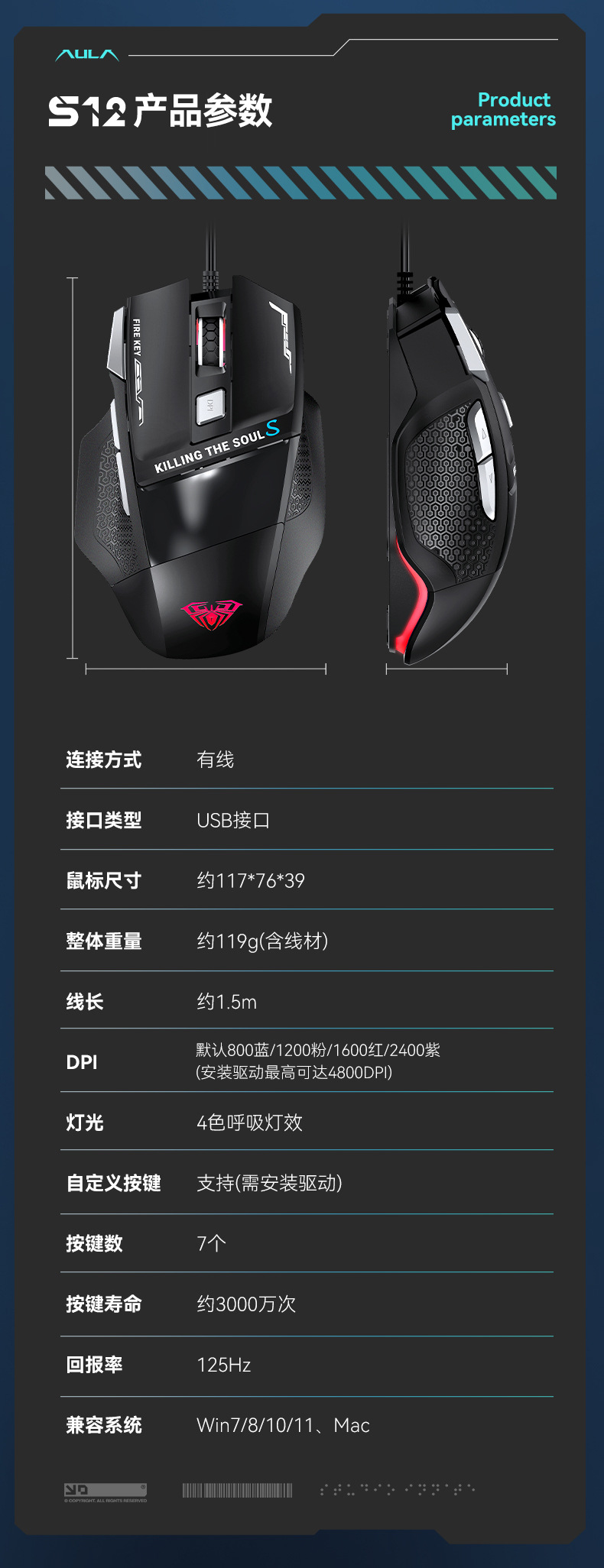 타란툴라 영혼 살해 S12 유선 게임 전자 경쟁 노트북 컴퓨터 기계 발광 인터넷 카페 매크로 프로그래밍 용 마우스스토어 가기