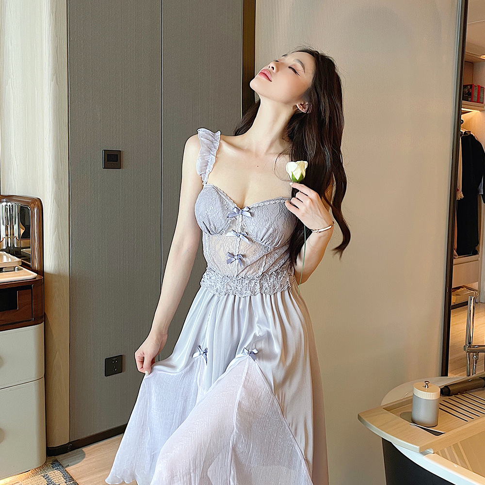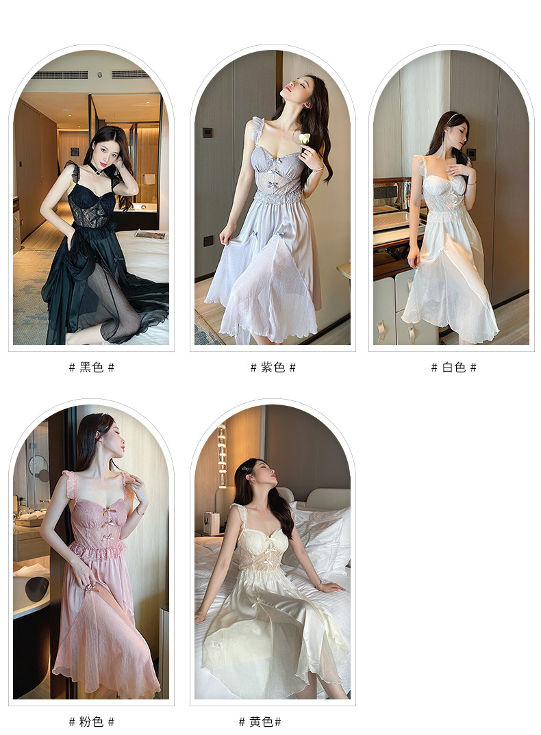 순수한 섹시함과 부드러움이 어우러진 끈나시 유혹 잠옷, 가슴 패드 내장, 등이 드러나는 롱 끈나시 원피스 여성 홈웨어 세트스토어 가기