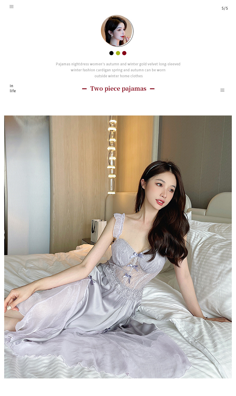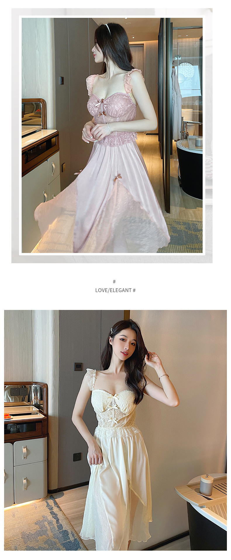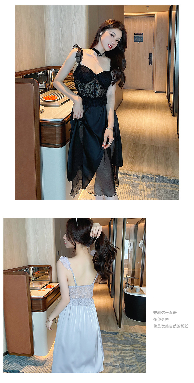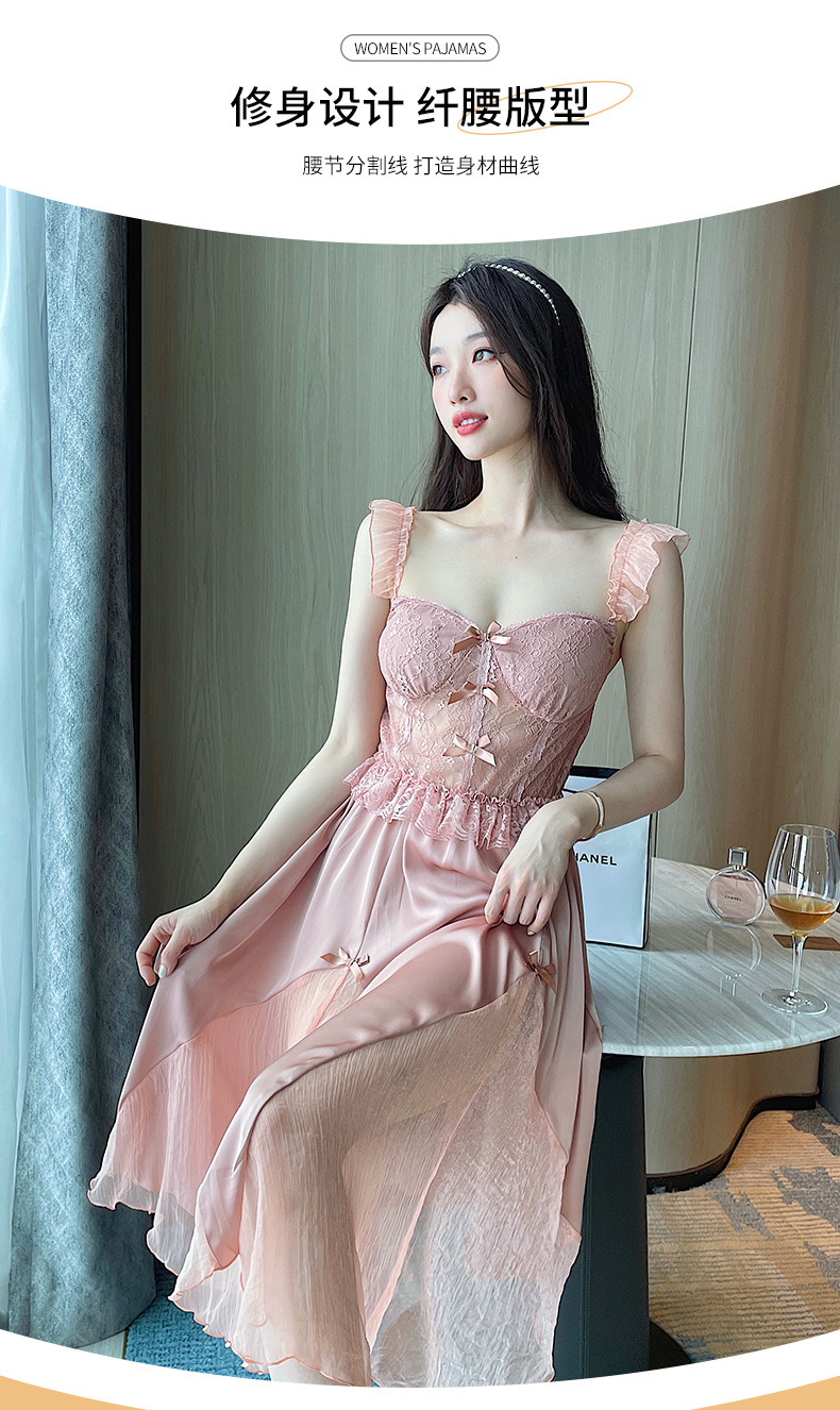 순수한 섹시함과 부드러움이 어우러진 끈나시 유혹 잠옷, 가슴 패드 내장, 등이 드러나는 롱 끈나시 원피스 여성 홈웨어 세트