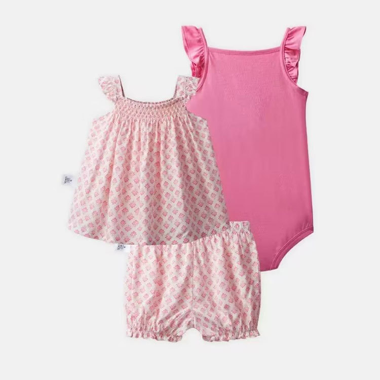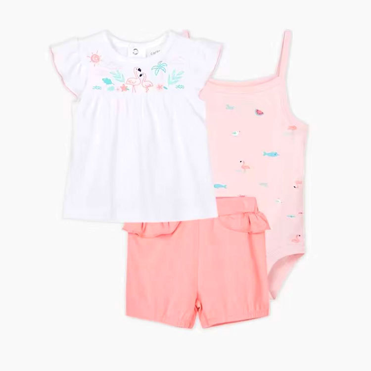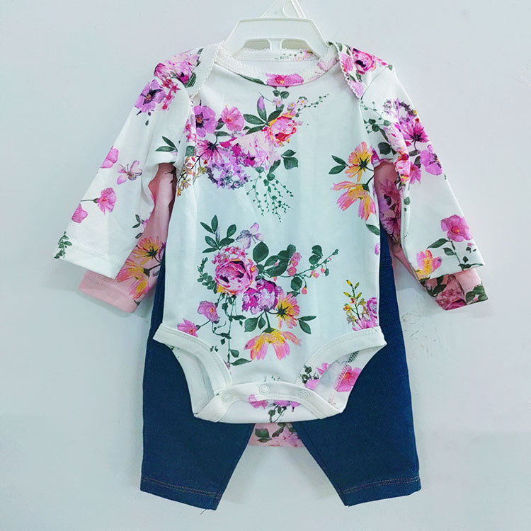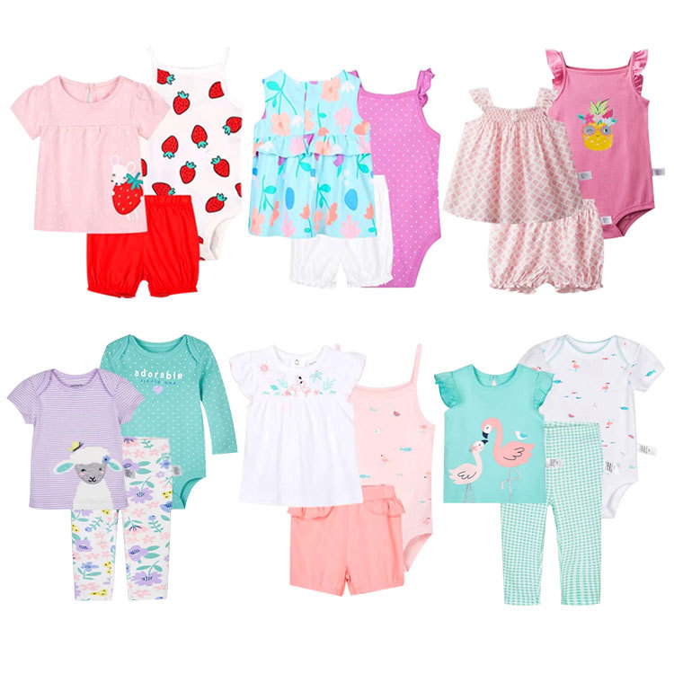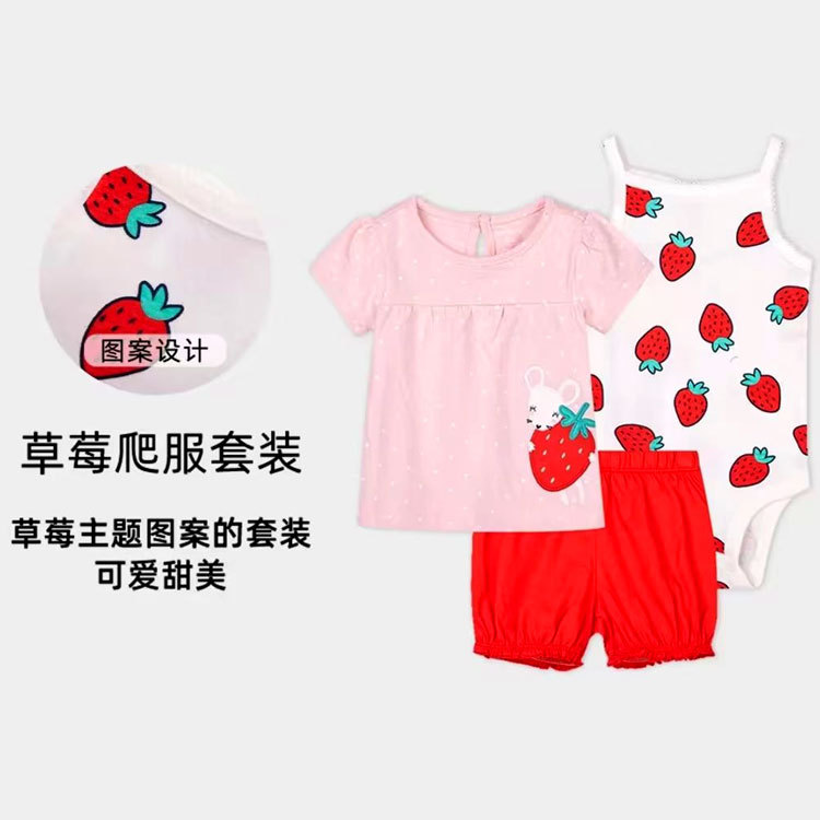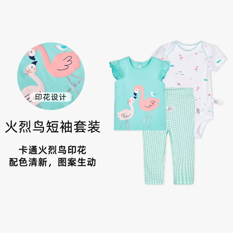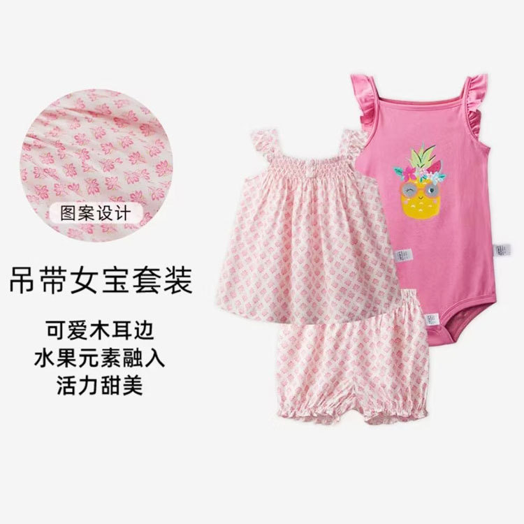 신생아 반팔 티셔츠 바지 3 종 세트 여성 아기 조끼 결합 하얼빈 옷 유아면 세트 유럽과 미국스토어 가기