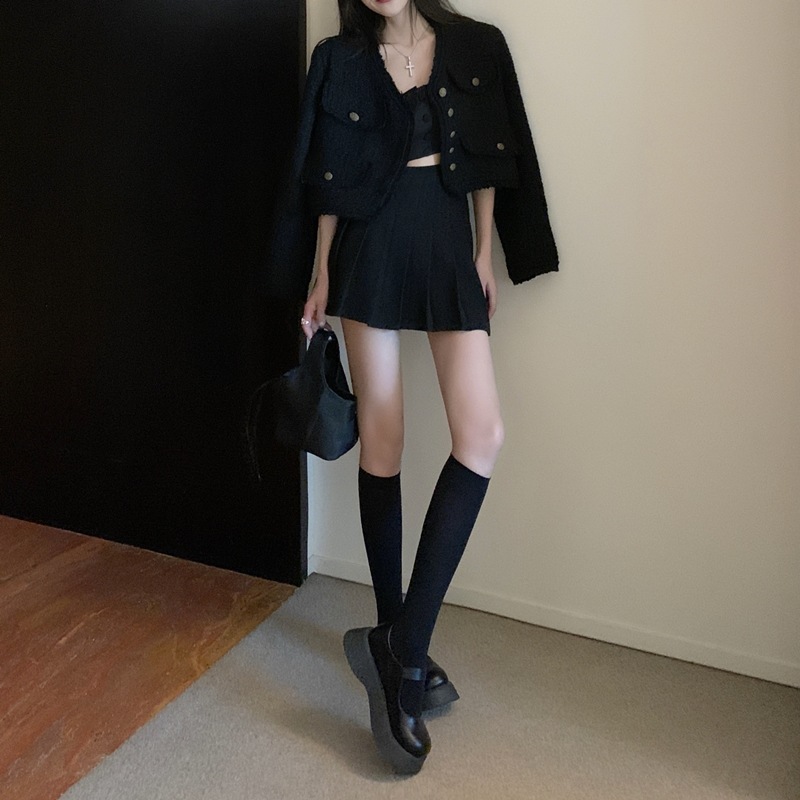 봄과 가을 얇은 그물 레드 일본 jk 무릎 위 긴 튜브 블랙 순수 벨벳 종아리 어린이를위한 중간 길이 양말스토어 가기