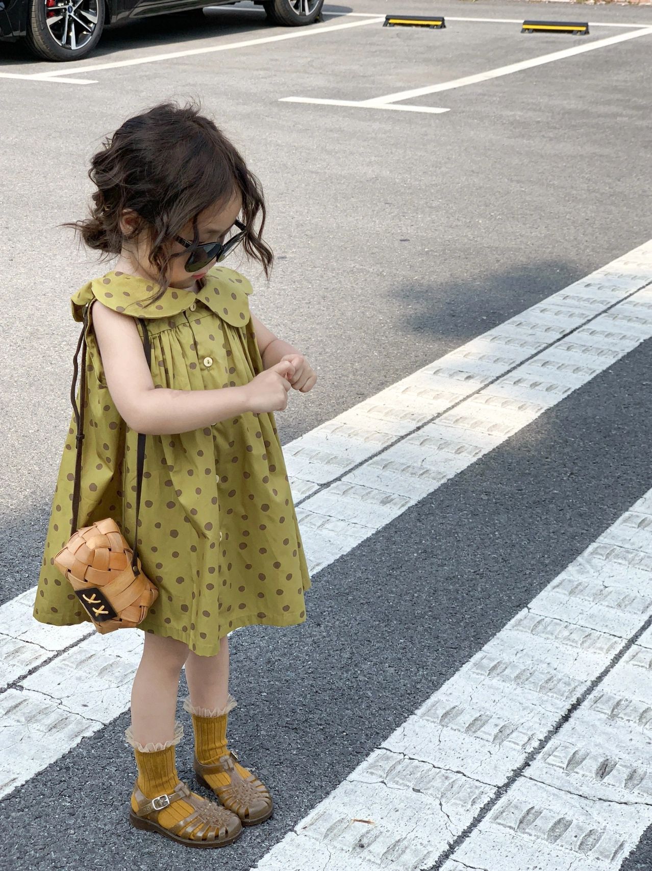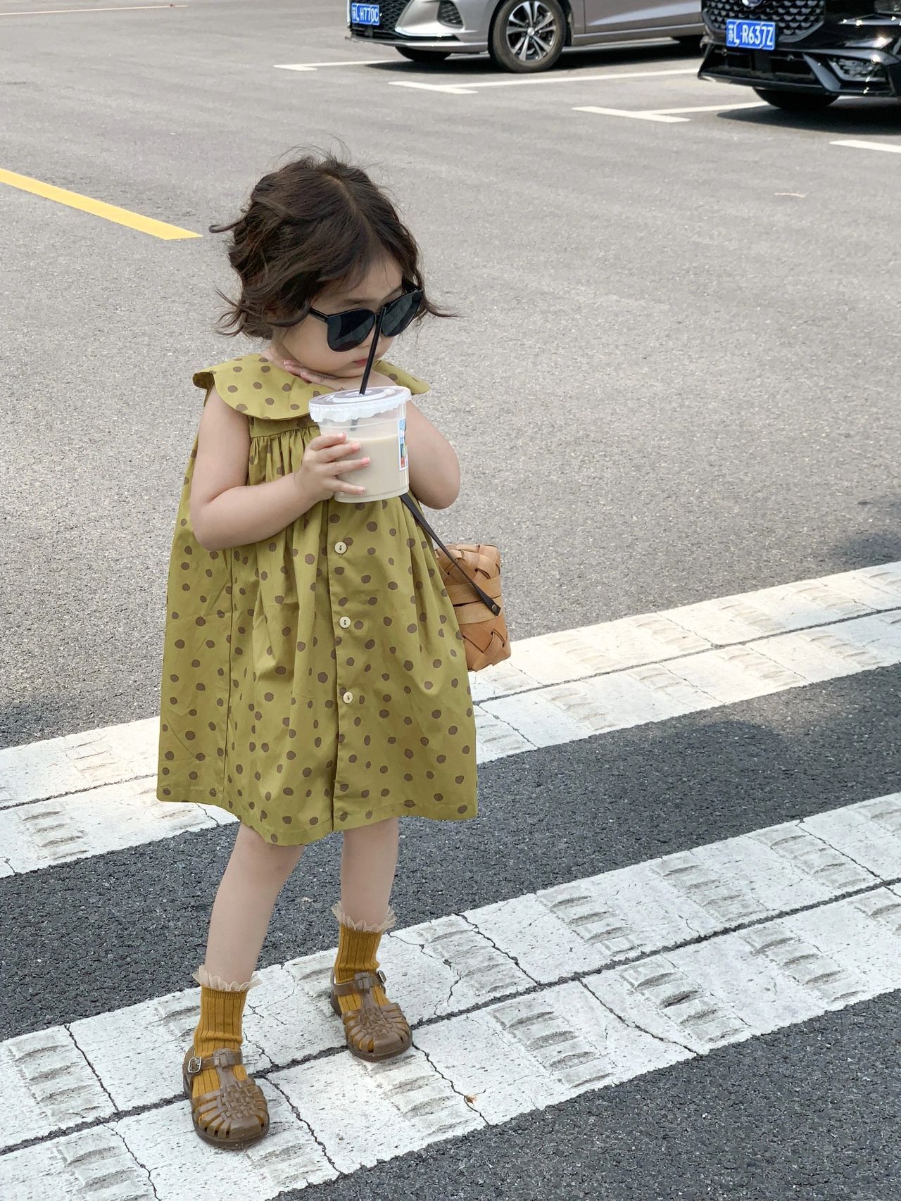 봄/여름 2023 ~ 한국 소녀 복고풍 웨이브 포인트 외국 스타일 인형 칼라 옷깃 민소매 조끼 스커트 원피스