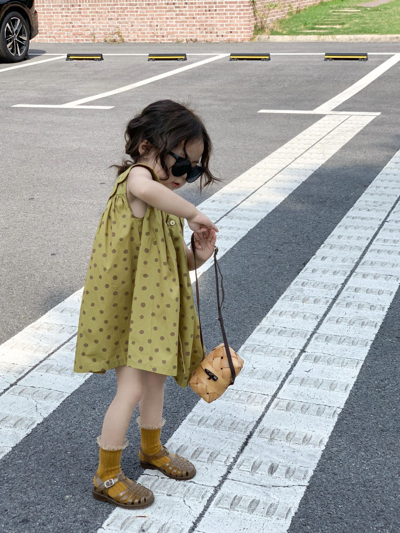 봄/여름 2023 ~ 한국 소녀 복고풍 웨이브 포인트 외국 스타일 인형 칼라 옷깃 민소매 조끼 스커트 원피스스토어 가기