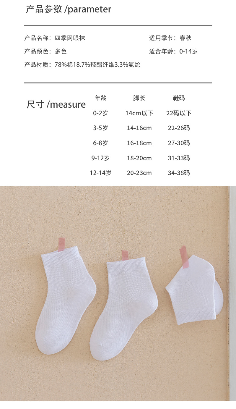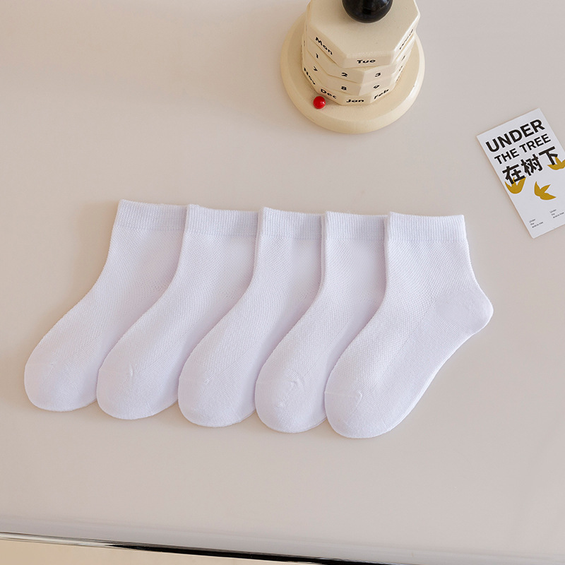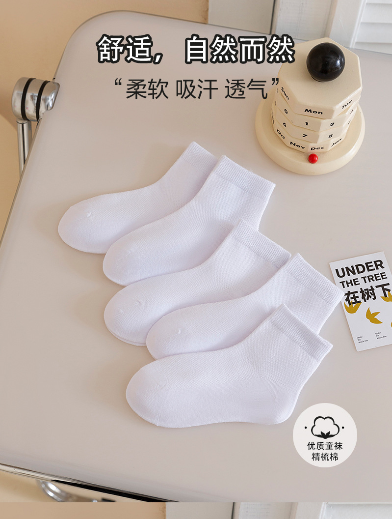 小巴兔儿童白色袜子春夏薄款小学生白袜子男童女童运动棉袜-恢复