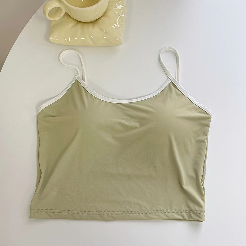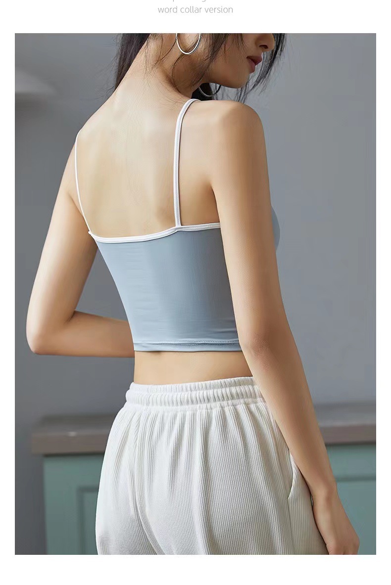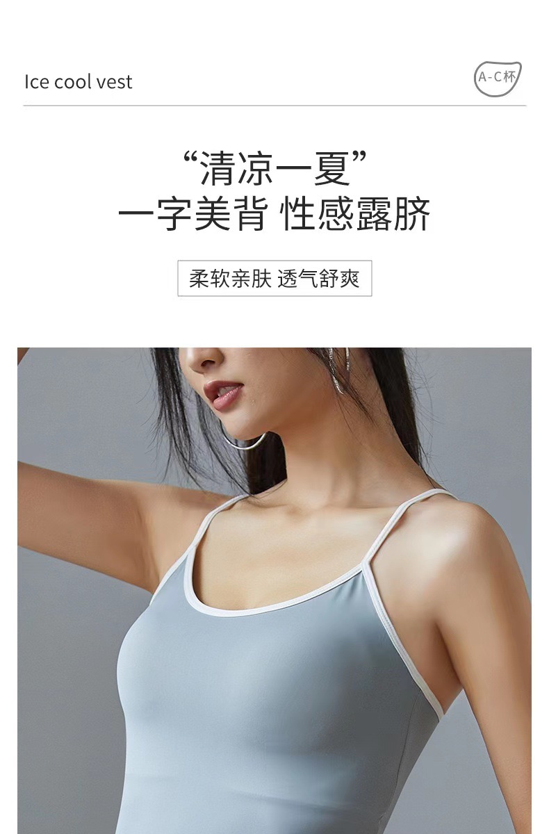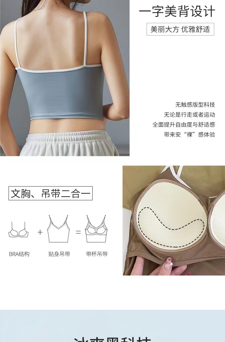 스틸 링이없는 가슴 패드 부착 공장 도매 봄과 여름 신아이스 실크 슬링 조끼 예쁜 백 베이스 스포츠 속옷 랩 가슴
