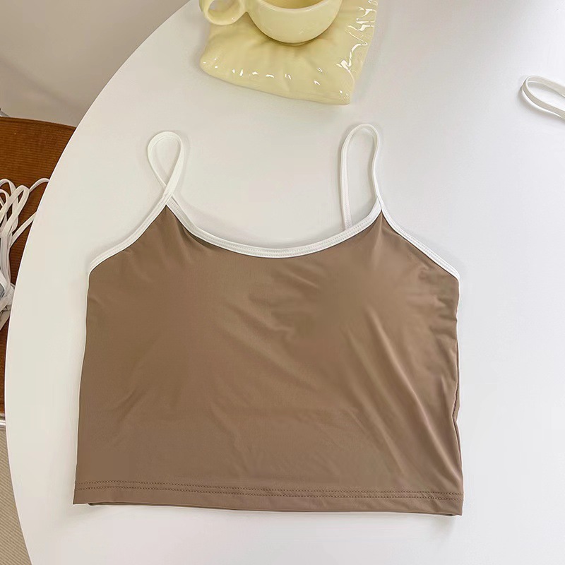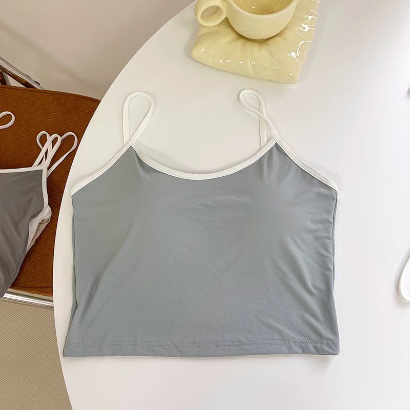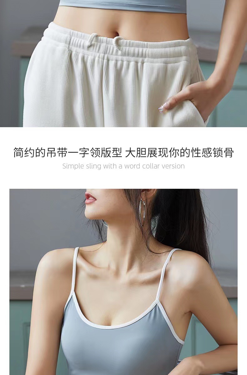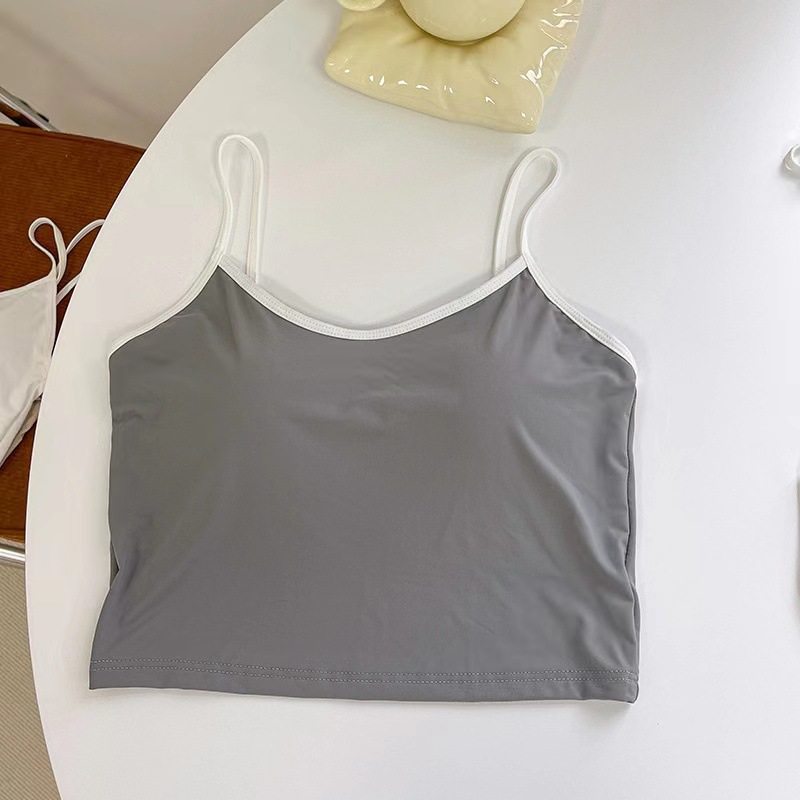스틸 링이없는 가슴 패드 부착 공장 도매 봄과 여름 신아이스 실크 슬링 조끼 예쁜 백 베이스 스포츠 속옷 랩 가슴