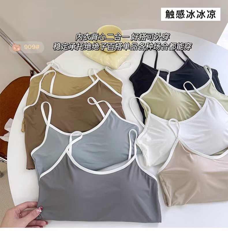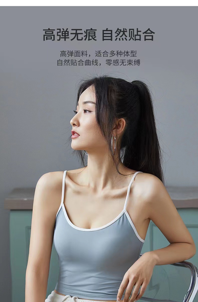 스틸 링이없는 가슴 패드 부착 공장 도매 봄과 여름 신아이스 실크 슬링 조끼 예쁜 백 베이스 스포츠 속옷 랩 가슴스토어 가기