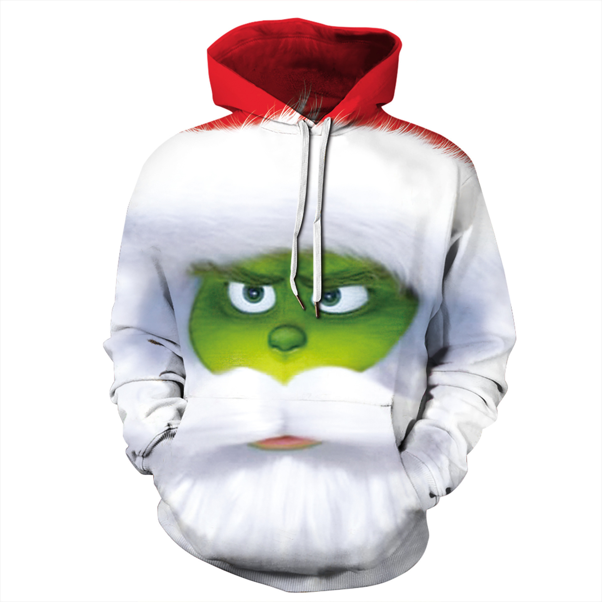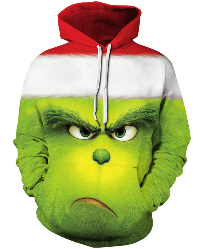 유럽과 미국 크리스마스 녹색 머리 괴물 그린치 후드 운동복 남성용 3D 디지털 인쇄 캐주얼 긴 소매 운동복 남성과 여성을위한