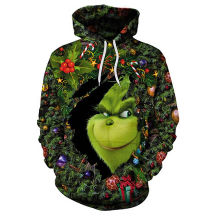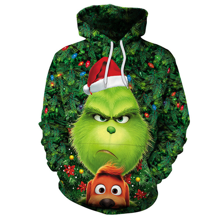 유럽과 미국 크리스마스 녹색 머리 괴물 그린치 후드 운동복 남성용 3D 디지털 인쇄 캐주얼 긴 소매 운동복 남성과 여성을위한스토어 가기