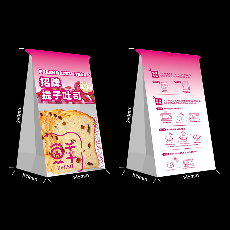 • PET/백색 티슈 페이퍼/CPP, 시그니처 건포도 토스트백 280*145+105mm