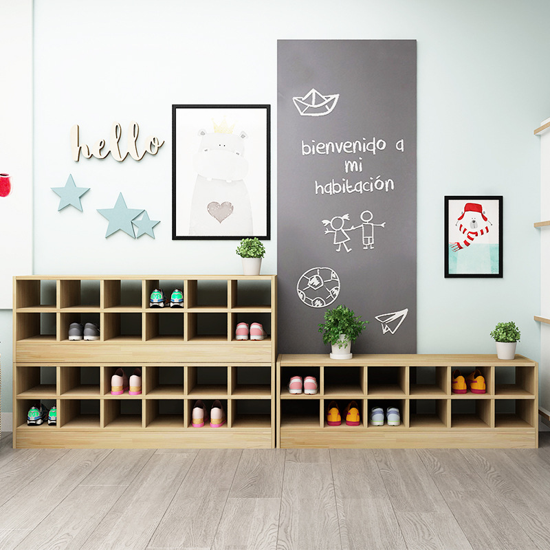유치원 단단한 나무 신발 캐비닛 보관 캐비닛 어린이 댄스 룸 벤치 신발 교체 캐비닛 랙 소나무 나무 조기 교육 격자 무늬 캐비닛 앉아스토어 가기