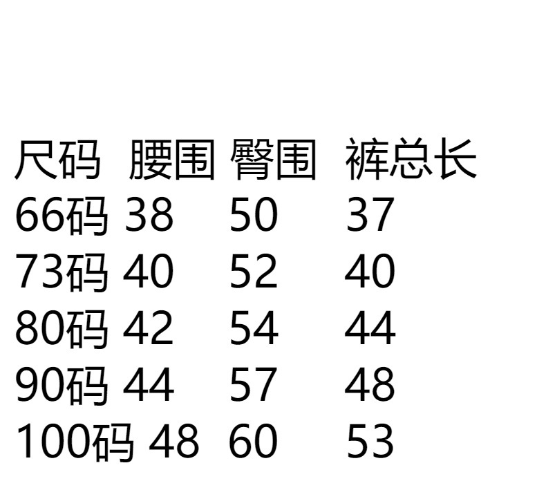 尺码  腰围 臀围  裤总长