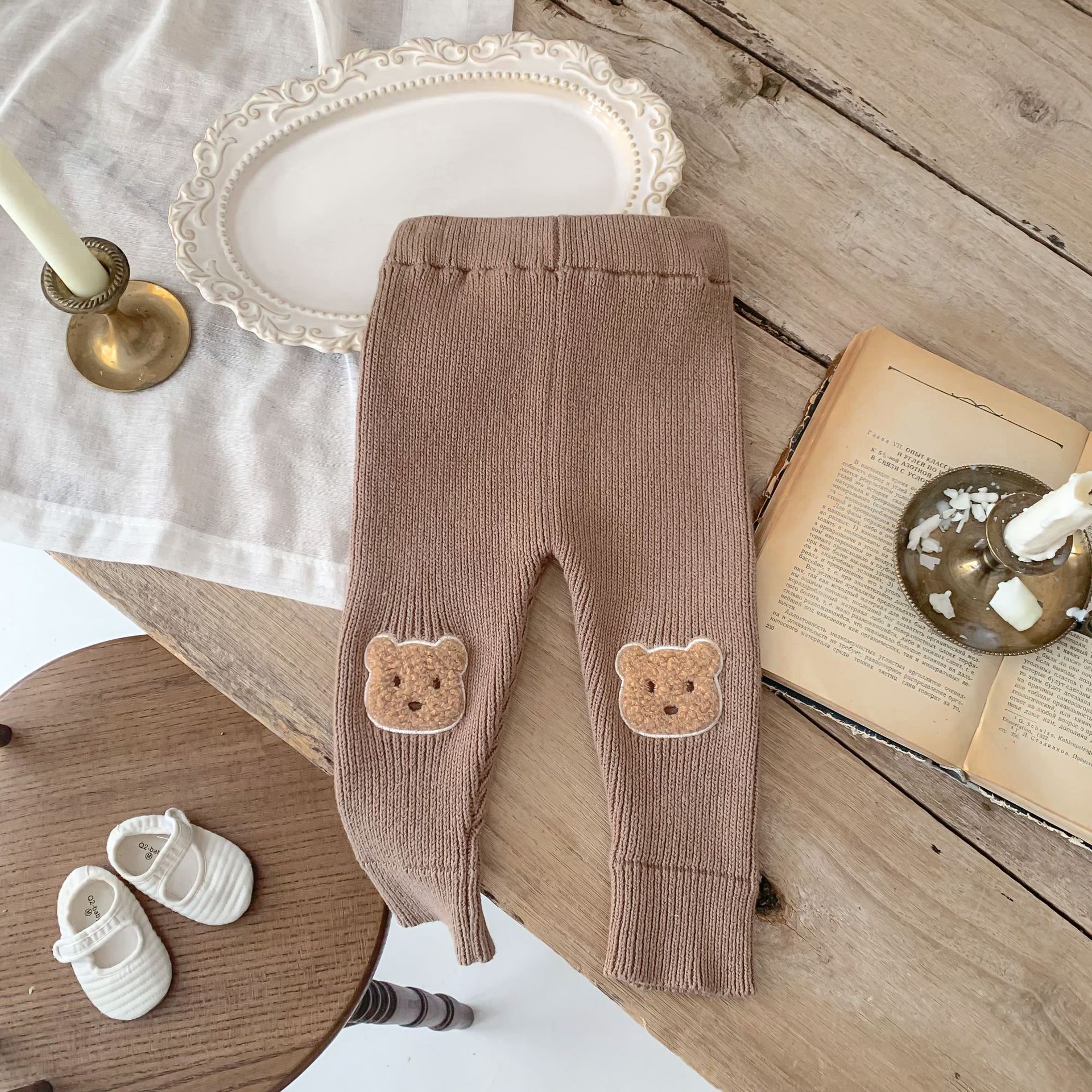 한국 스타일 아기 봄과 가을 니트 겉옷 레깅스 아기 바지 봄 곰 큰 PP 캐주얼 바지스토어 가기