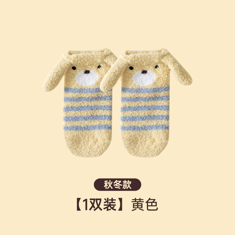 • 옐로우 산호 양털 미끄럼 방지 양말