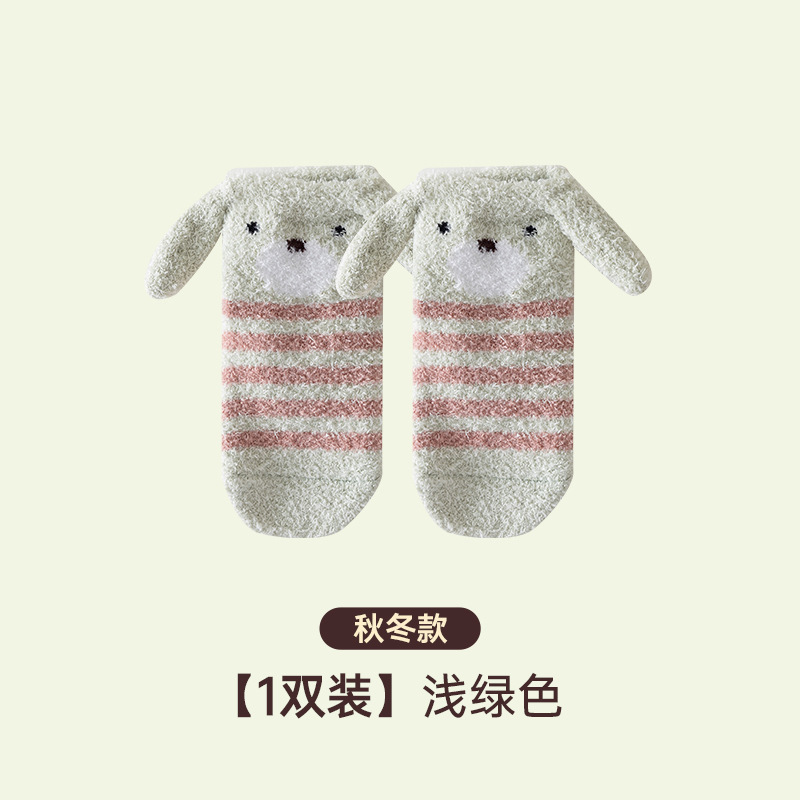• 라이트 그린 산호 양털 미끄럼 방지 양말