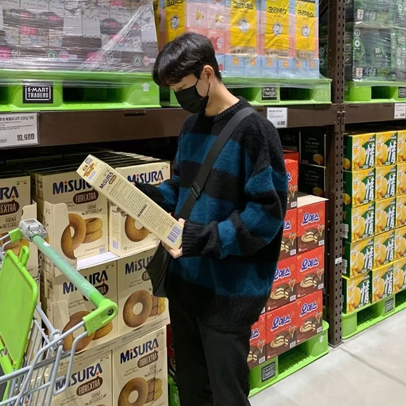 크루넥 디자인 센스 게으른 스트라이프 스웨터 새로운 니트웨어 루즈한 아메리칸 탑 트렌디 남성 트렌디 스웨터 남성용 겨울스토어 가기