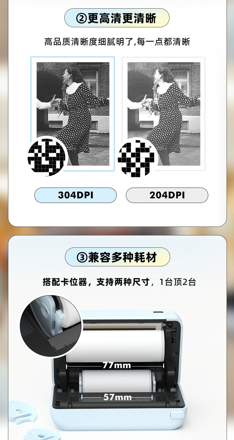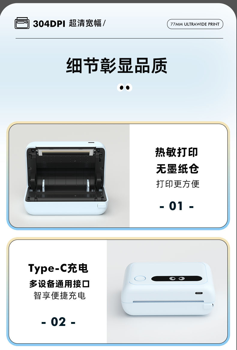 라벨 프린터 와이드 포맷 무잉크 텍스트 라벨 기계 사진 학생용 스티커 프린터 오답지 수정 도구 열전사