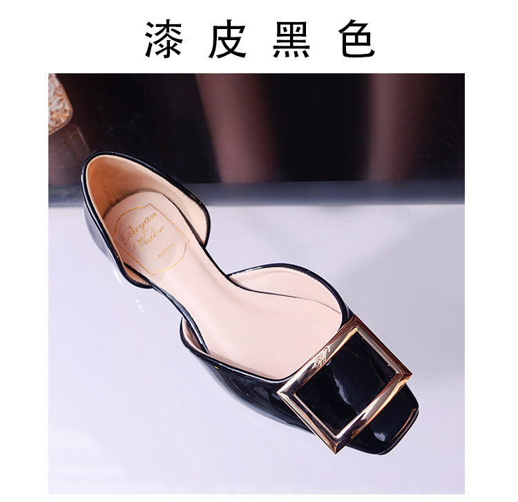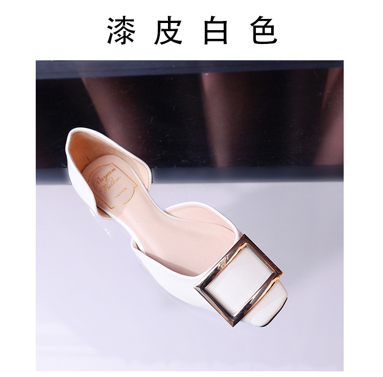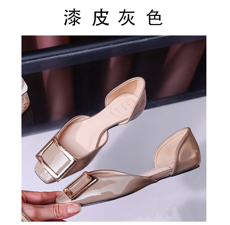 [재고 있음] 드롭 배송 rv tep 스퀘어 버클 라이트 중공 페이턴트 가죽 플랫 슈즈 여성용 메탈 스퀘어 토 슈즈
