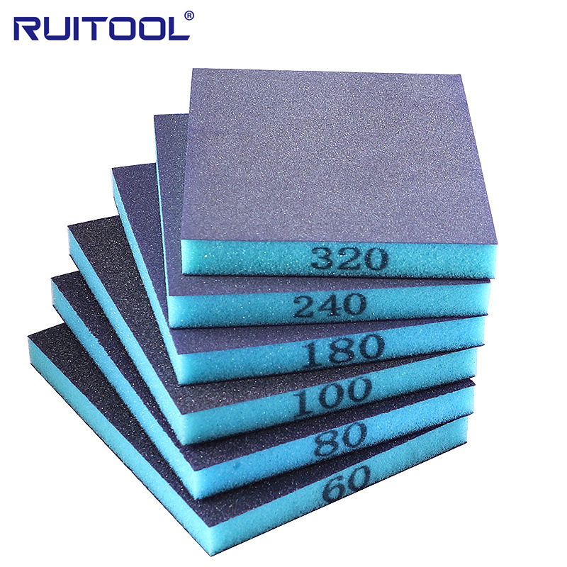 스폰지 연삭 사포 60-320 메쉬 양면 모래 블록 사각 금속 더싱 목공 연마 습식 및 건식