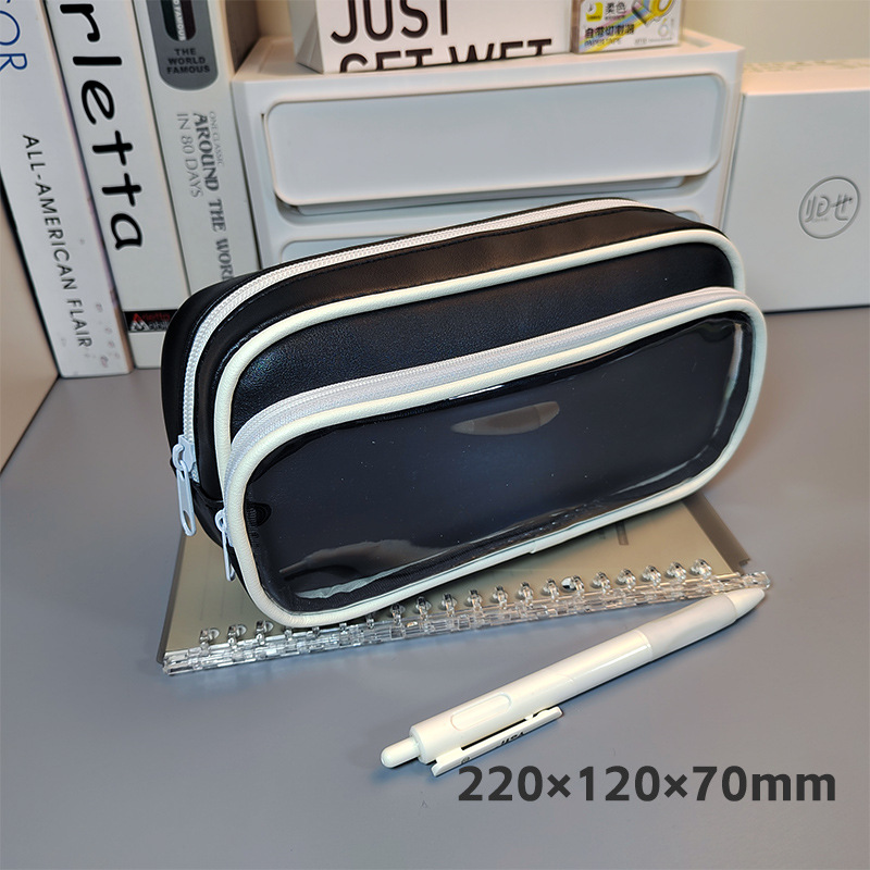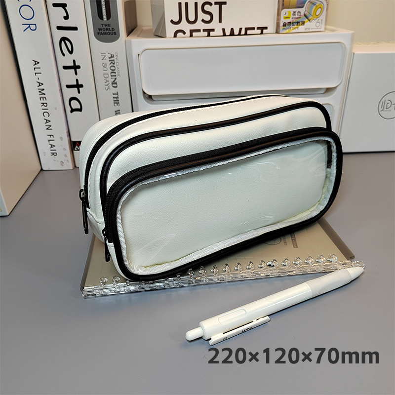 한국 코너 가죽 투명창 필통 중고등학생 화장품 수납 가방 2025 신상 문구