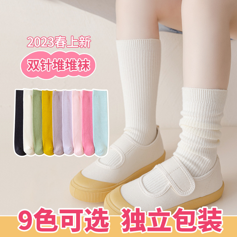 여아 양말 2024 봄 어린 소녀 레깅스 양말 한국 스타일 스트라이프 이중 바늘 어린이 캔디 컬러 스타일