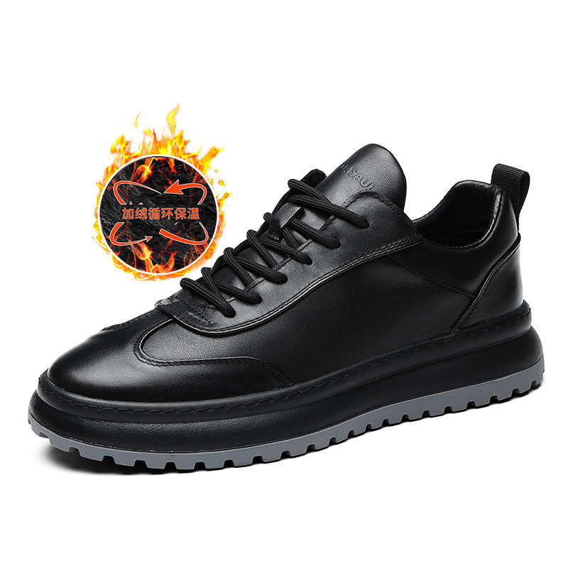 새로운 정품 가죽 남성 신발 캐주얼 신발 가죽 신발 운동화 남성 한국 스타일 유행 흰색 신발 모든 일치 기모 면 신발스토어 가기