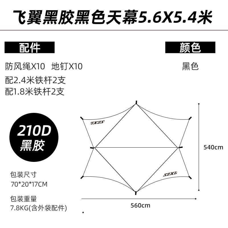 세 당나귀 야외 음영 몬스터 캐노피 블랙 접착제 피크닉 천막 다이아몬드 자외선 차단제 더블 날개 육각 캐노피스토어 가기
