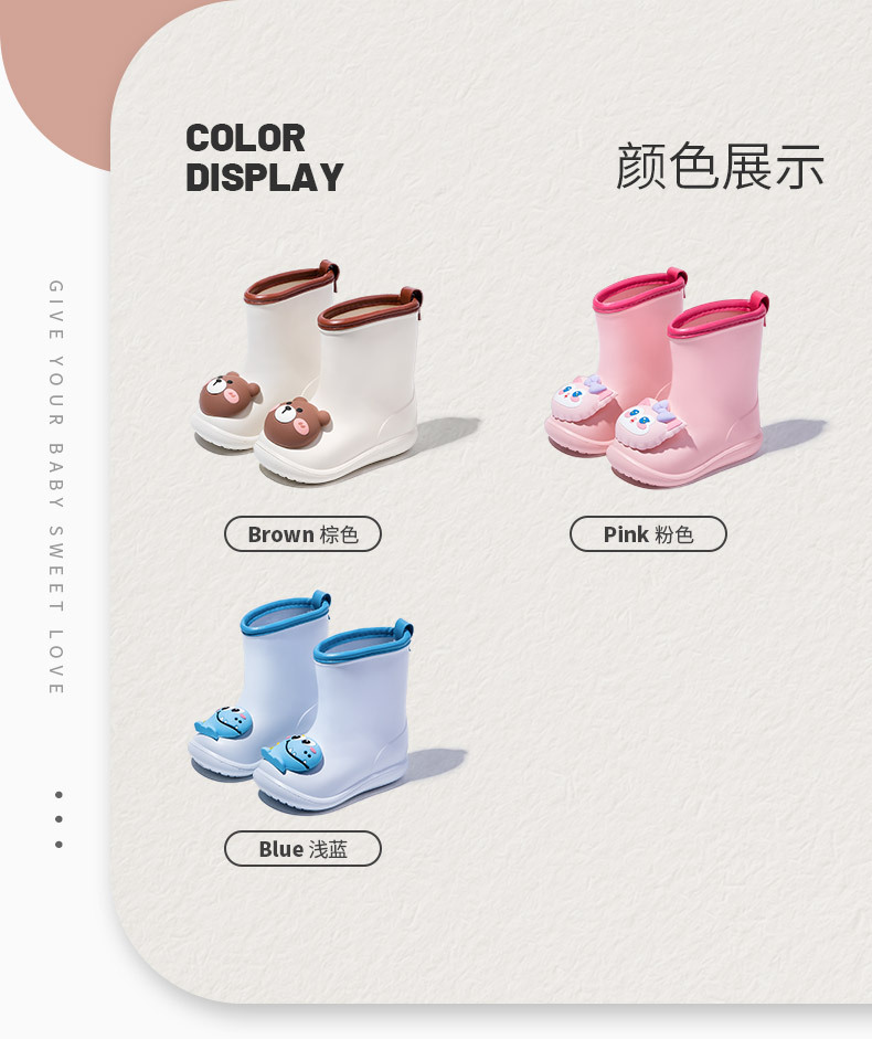 새끼 사슴 밀리 새로운 어린이 레인 부츠 EVA 소년과 소녀 귀여운 부드러운 바닥 내마모성 물 신발 귀여운 만화 도매