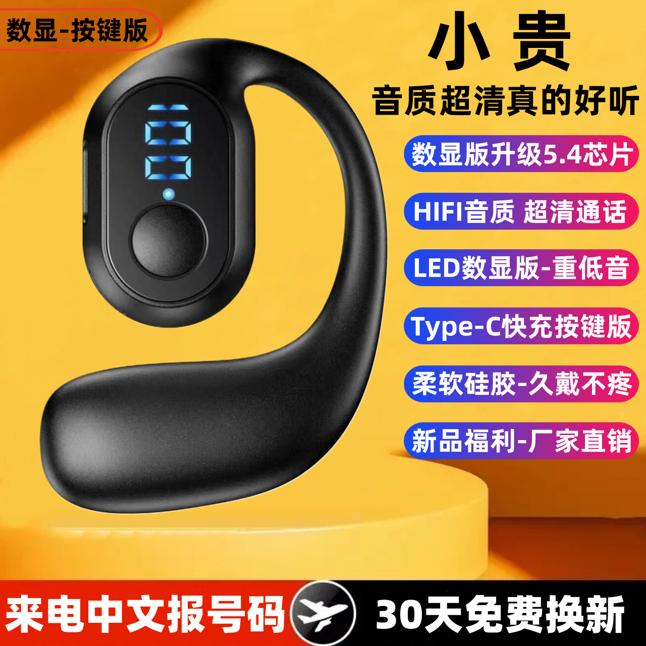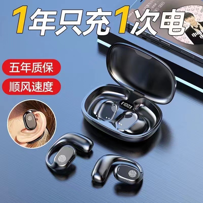 挂耳式蓝牙耳机骨传导无线不入耳数字显示长续航运动外卖代驾单耳